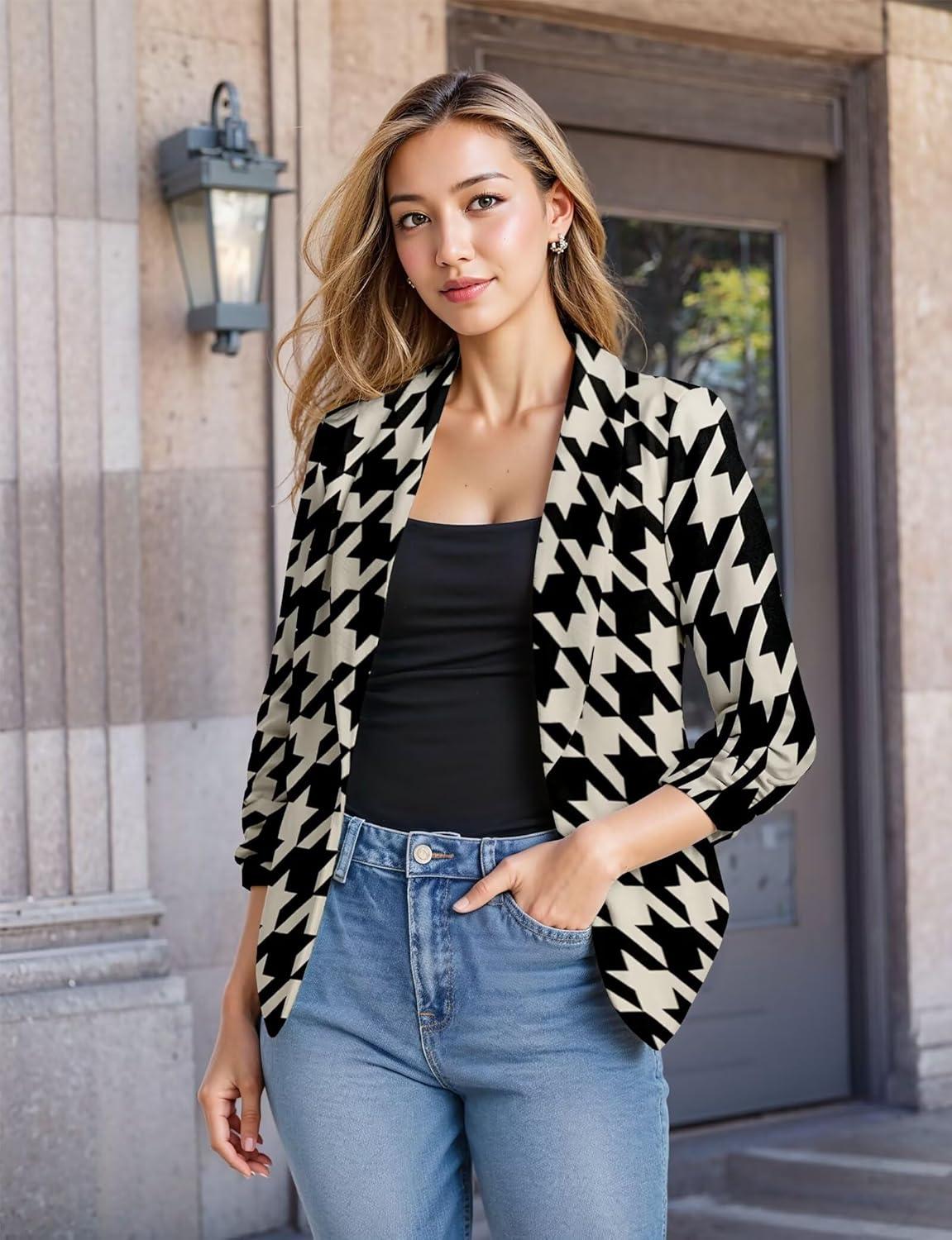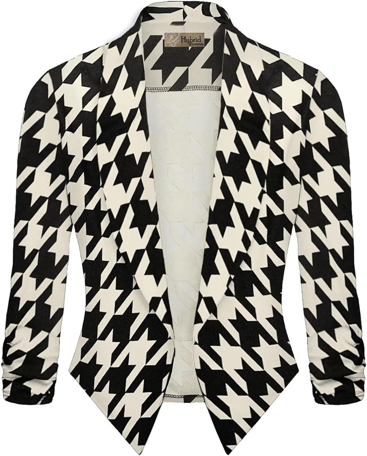 Hybrid & Company Lightweight Open Front Cardigan Classic Ruched Sleeve Work Office Blazer Suit Jackets(10963-navy Multi)