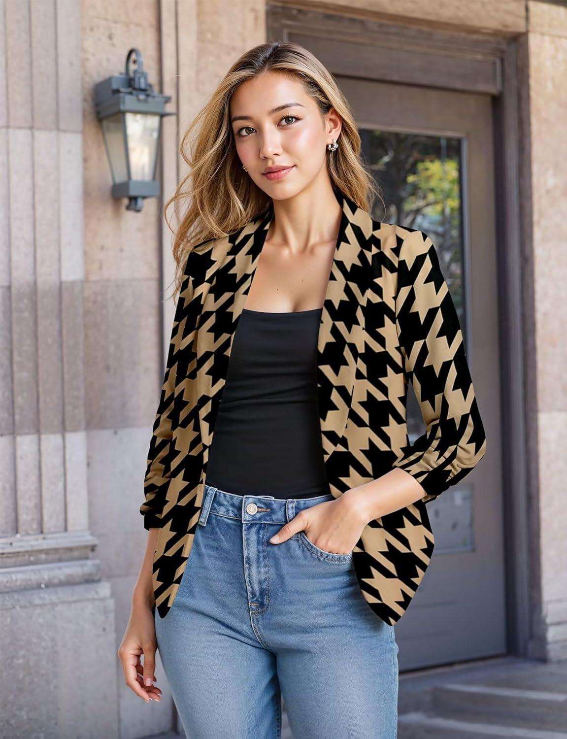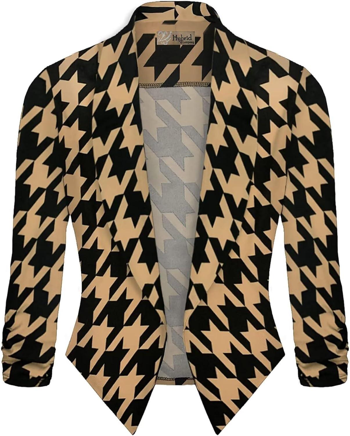 Hybrid & Company Lightweight Open Front Cardigan Classic Ruched Sleeve Work Office Blazer Suit Jackets(Khaki-9789)