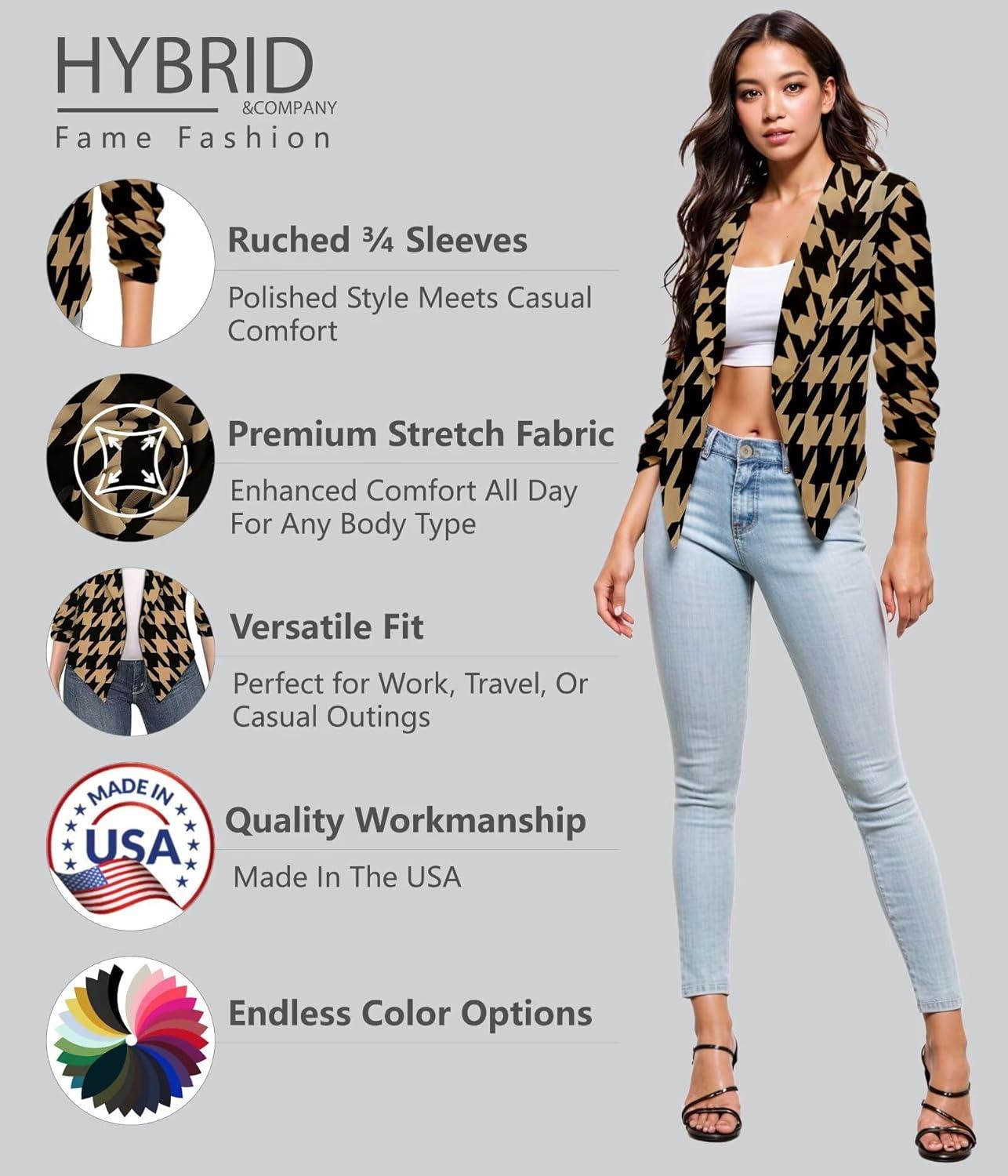 Be the first to review “Hybrid & Company Lightweight Open Front Cardigan Classic Ruched Sleeve Work Office Blazer Suit Jackets(11394-blktau)”