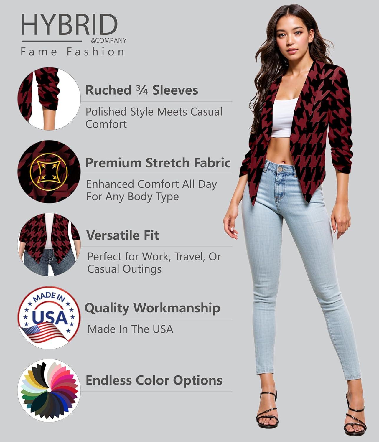 Be the first to review “Hybrid & Company Lightweight Open Front Cardigan Classic Ruched Sleeve Work Office Blazer Suit Jackets(11394-winblk)”