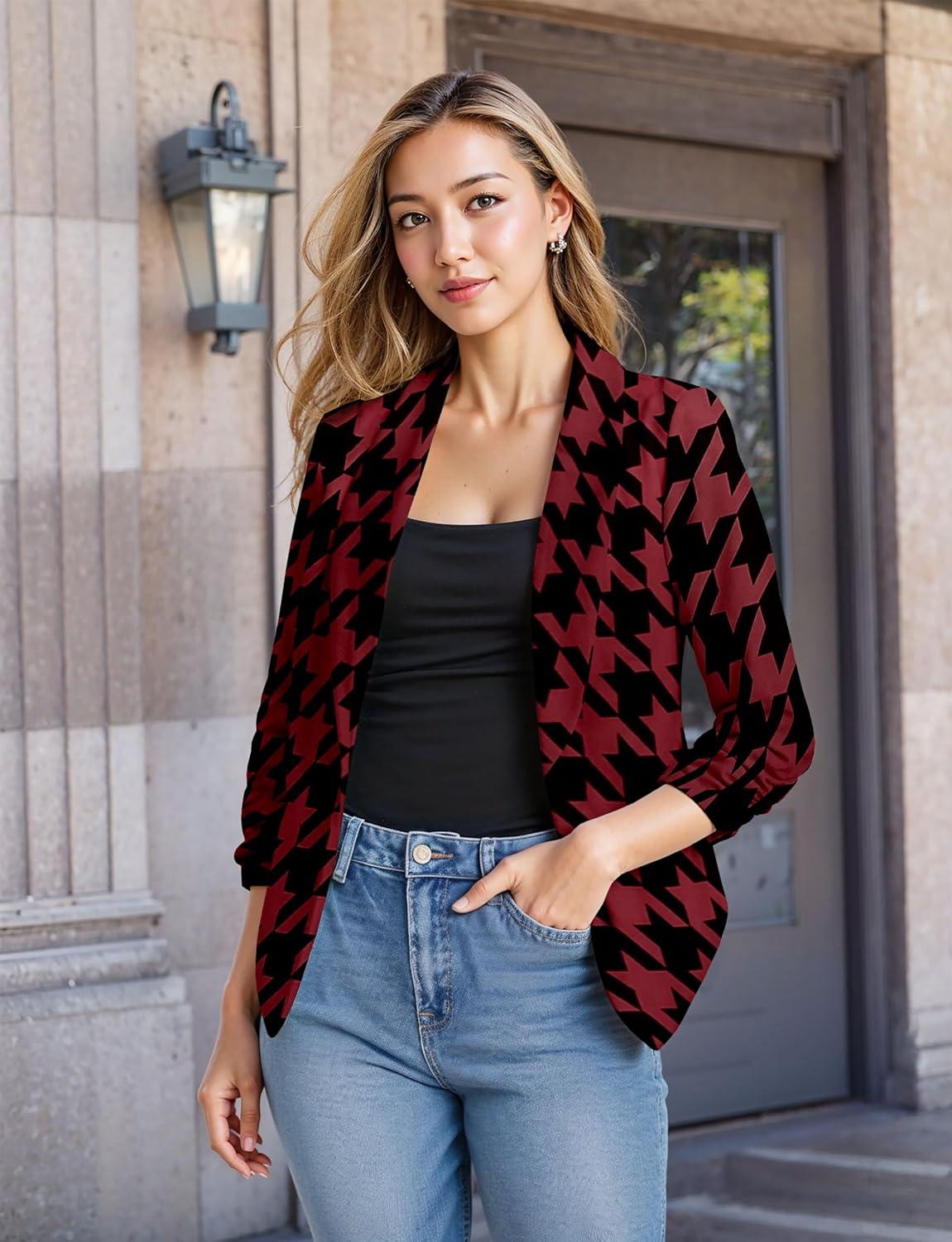 Hybrid & Company Lightweight Open Front Cardigan Classic Ruched Sleeve Work Office Blazer Suit Jackets(11394-winblk)