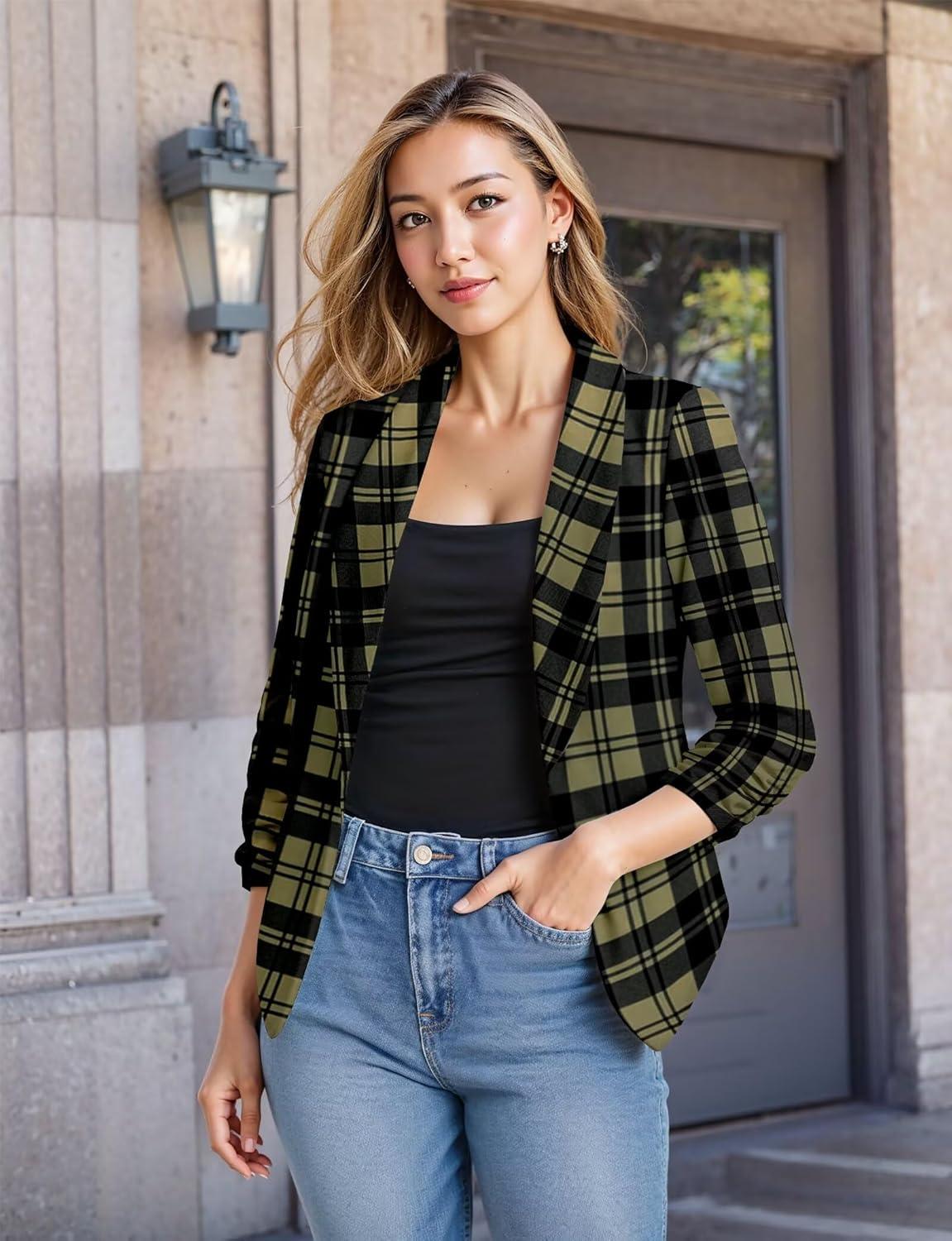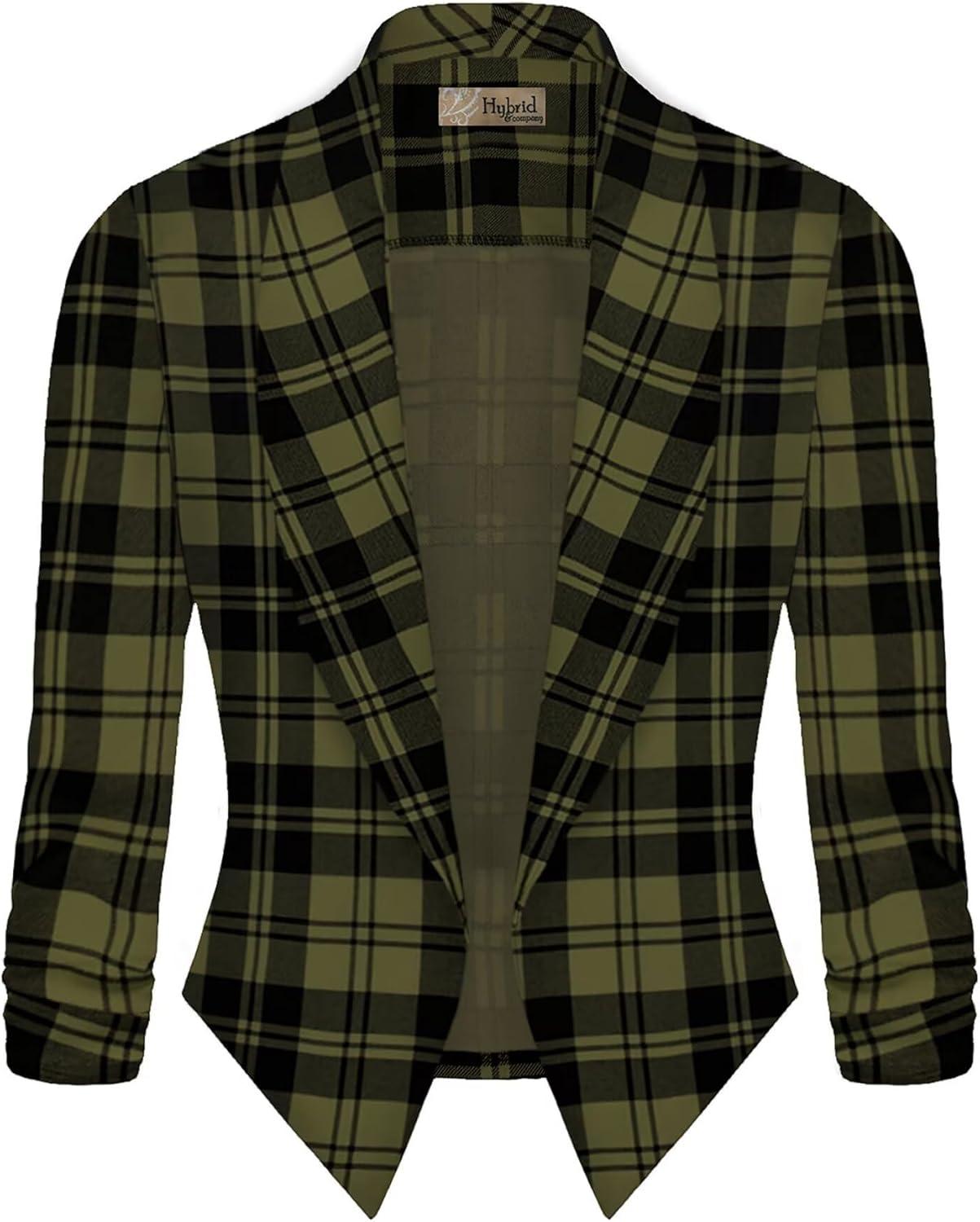 Hybrid & Company Lightweight Open Front Cardigan Classic Ruched Sleeve Work Office Blazer Suit Jackets(11396-blkoli)