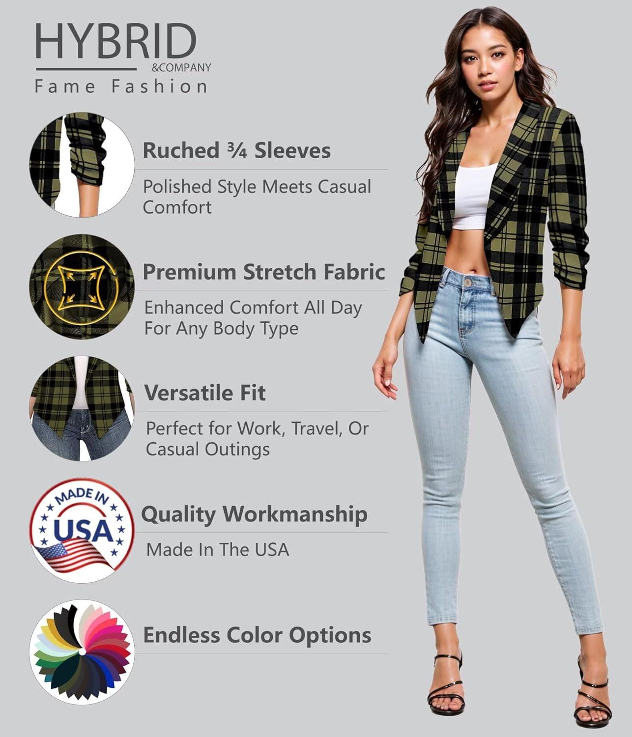 Be the first to review “Hybrid & Company Lightweight Open Front Cardigan Classic Ruched Sleeve Work Office Blazer Suit Jackets(11396-blkoli)”