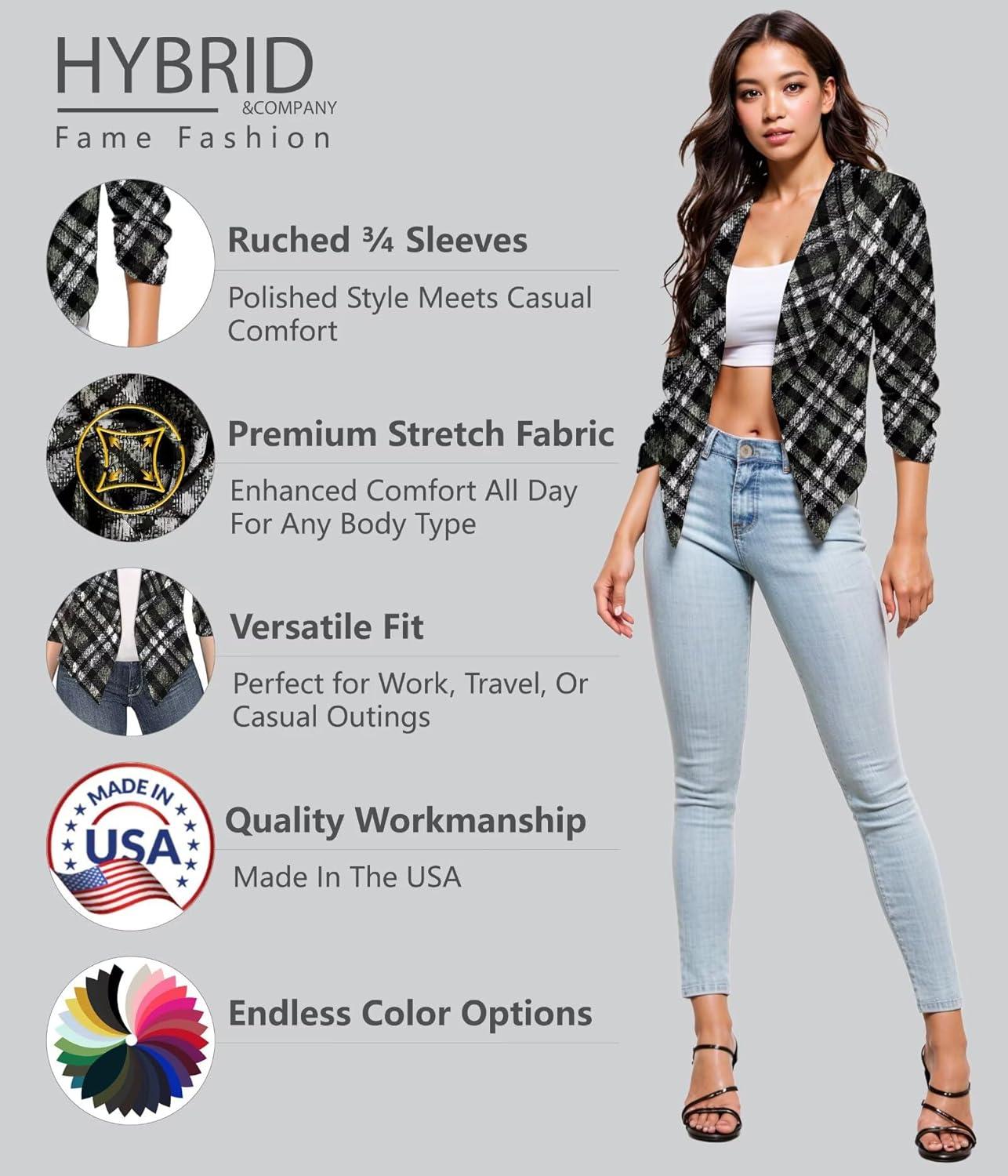 Hybrid & Company Lightweight Open Front Cardigan Classic Ruched Sleeve Work Office Blazer Suit Jackets(11252-blkivo)