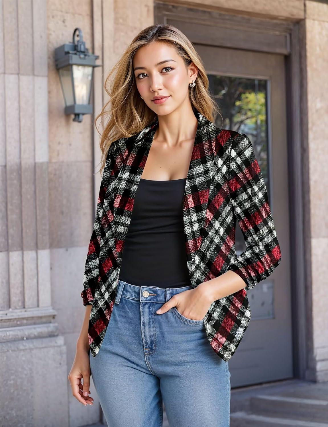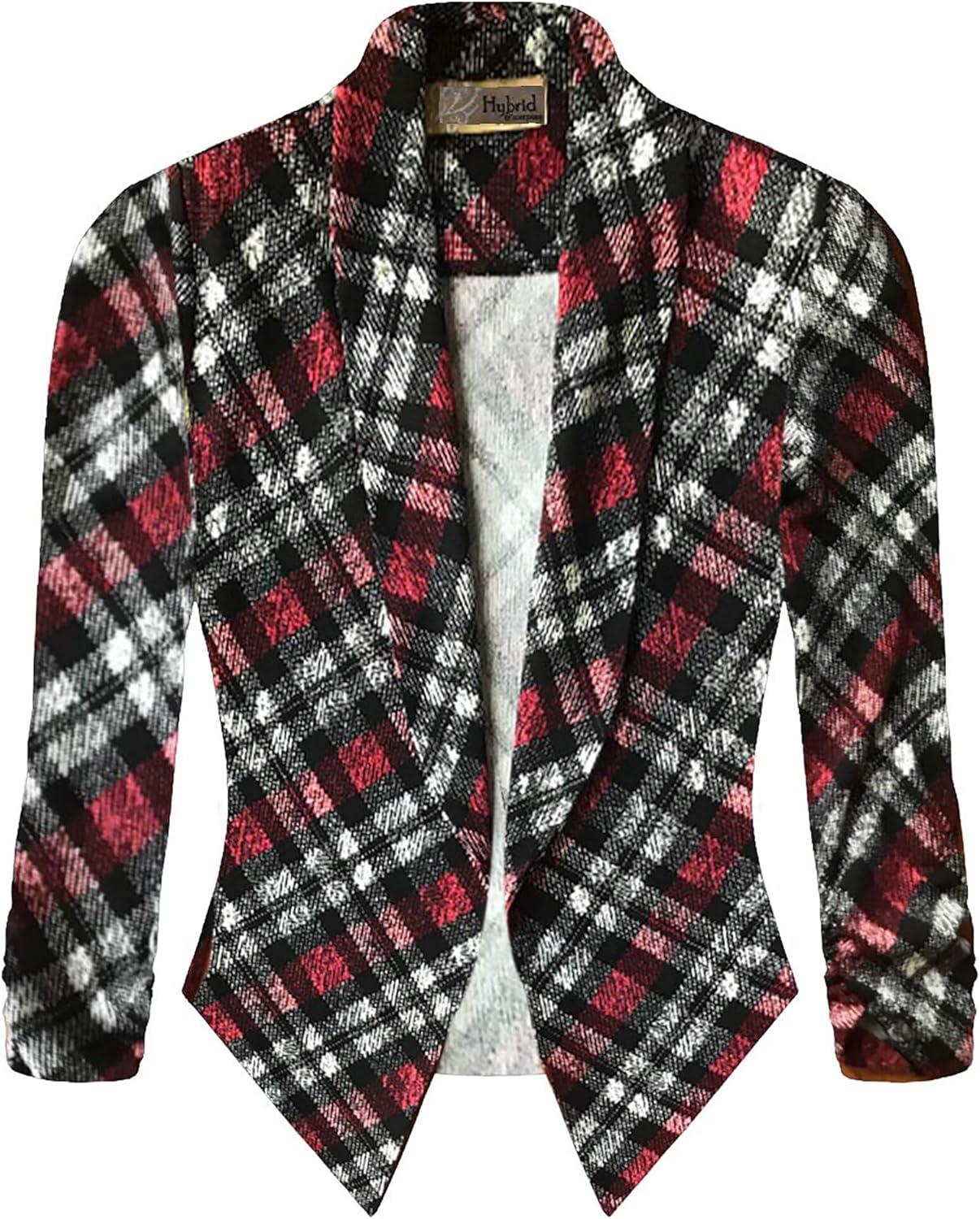 Hybrid & Company Lightweight Open Front Cardigan Classic Ruched Sleeve Work Office Blazer Suit Jackets(7701-coralmulti)