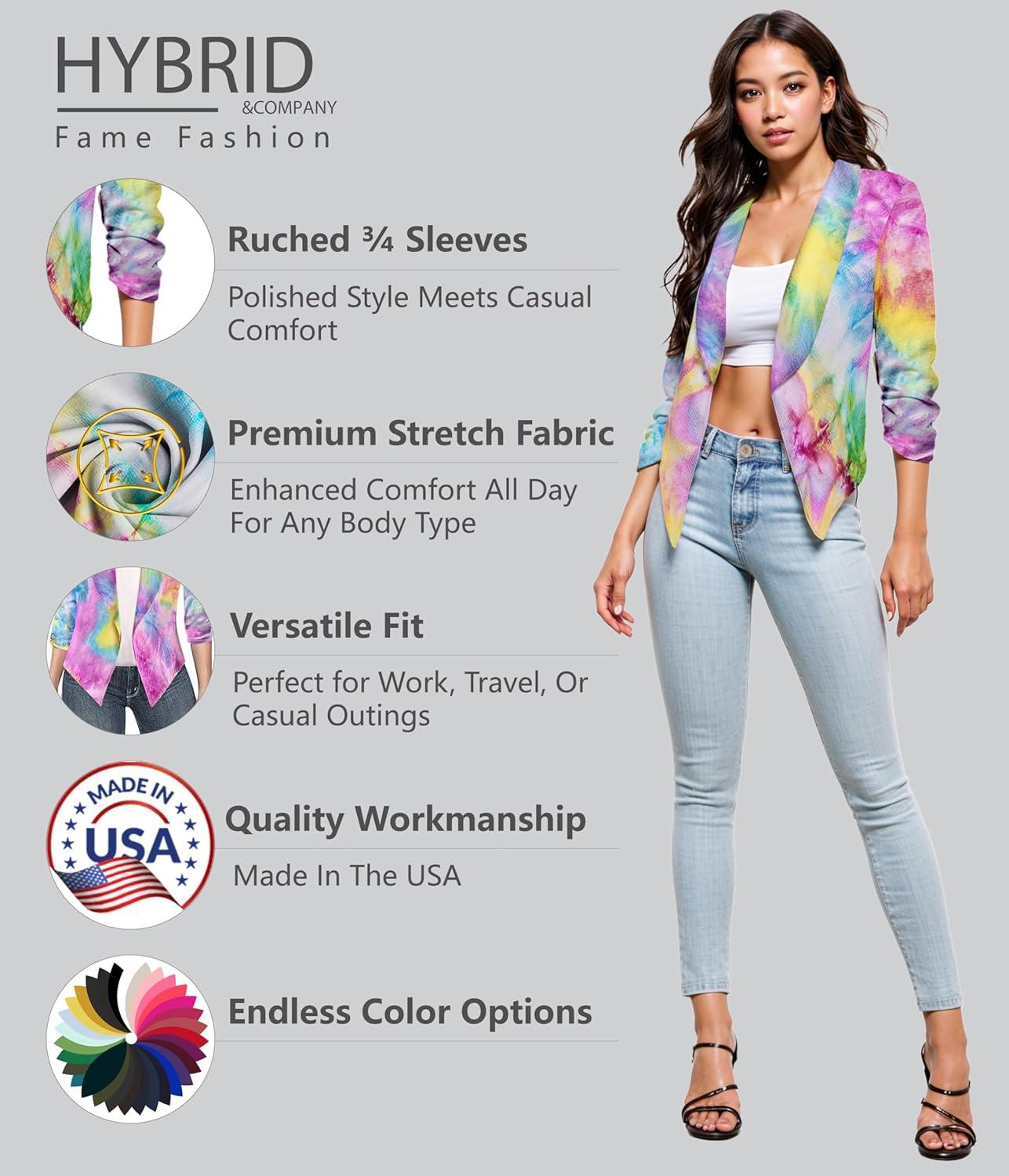 Hybrid & Company Lightweight Open Front Cardigan Classic Ruched Sleeve Work Office Blazer Suit Jackets(11394-blktau)