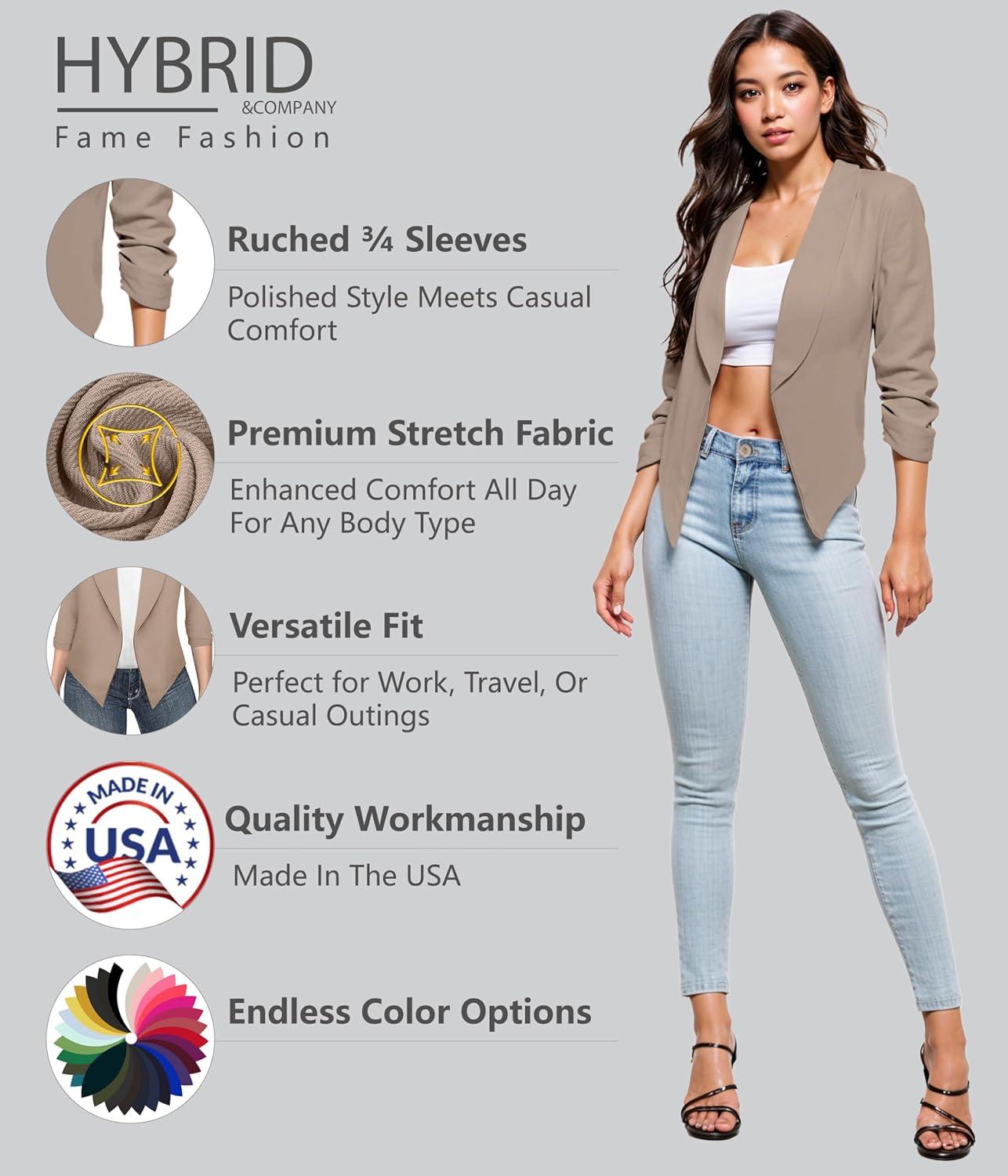 Be the first to review “Hybrid & Company Lightweight Open Front Cardigan Classic Ruched Sleeve Work Office Blazer Suit Jackets(Beige)”