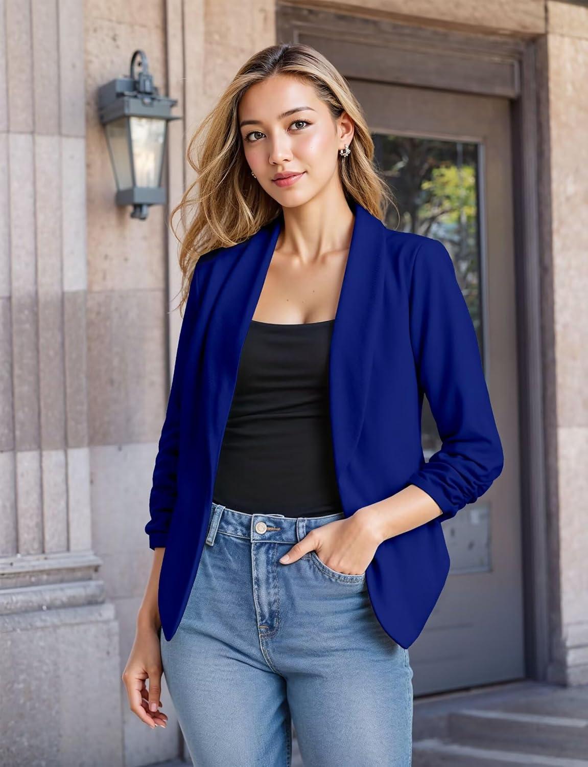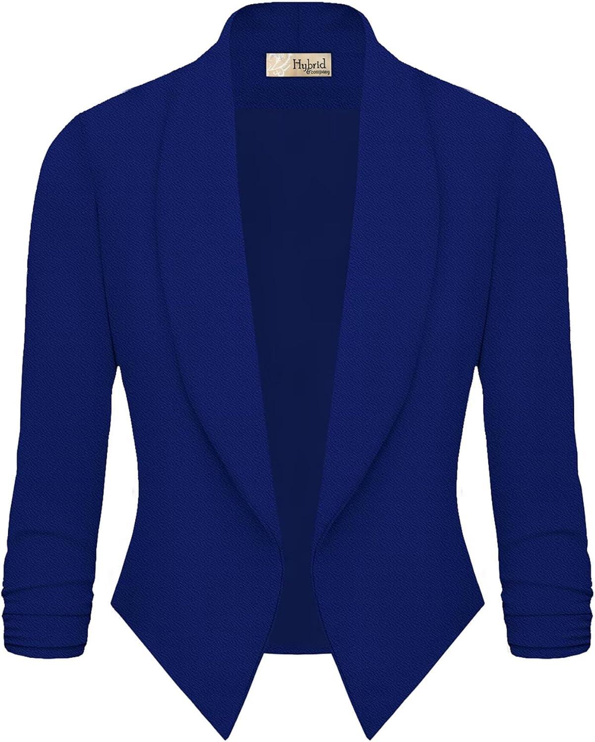 Hybrid & Company Lightweight Open Front Cardigan Classic Ruched Sleeve Work Office Blazer Suit Jackets(Cobaltblue)