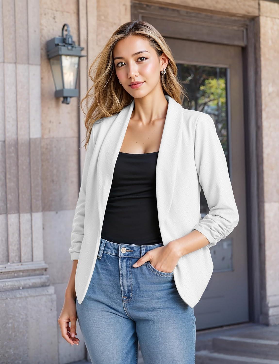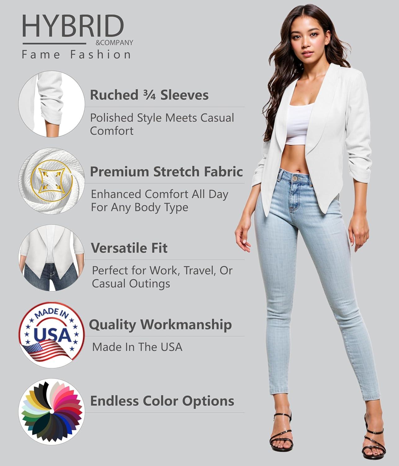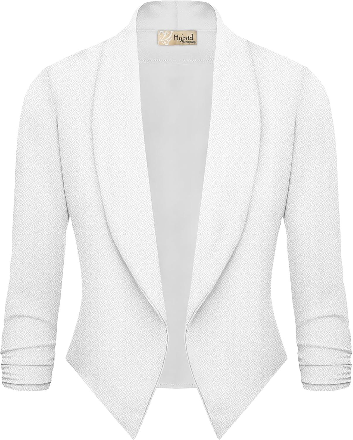 Hybrid & Company Lightweight Open Front Cardigan Classic Ruched Sleeve Work Office Blazer Suit Jackets(Ivory)