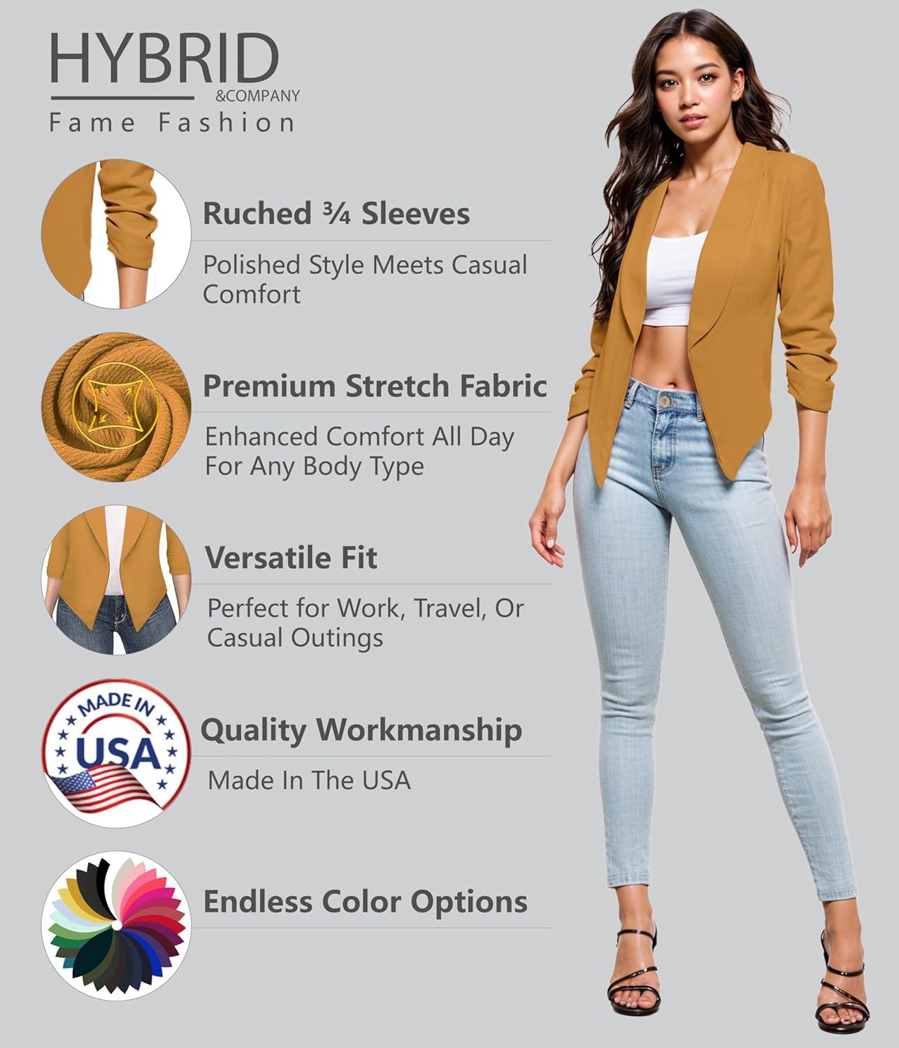 Be the first to review “Hybrid & Company Lightweight Open Front Cardigan Classic Ruched Sleeve Work Office Blazer Suit Jackets(Mustard)”