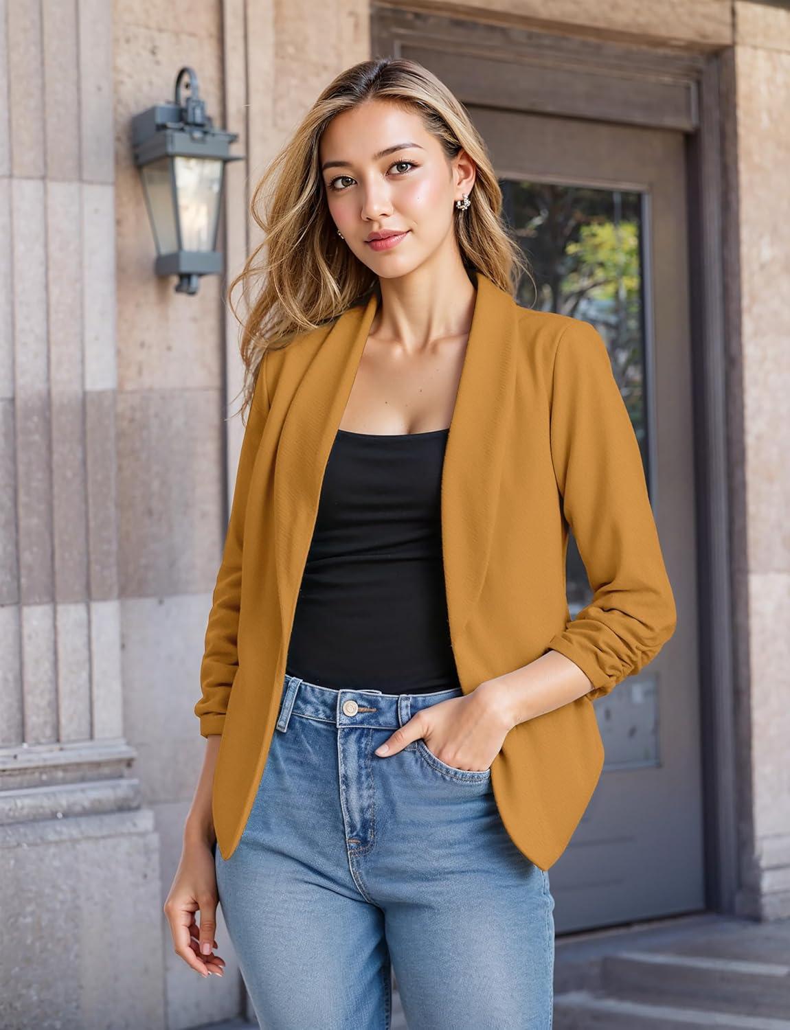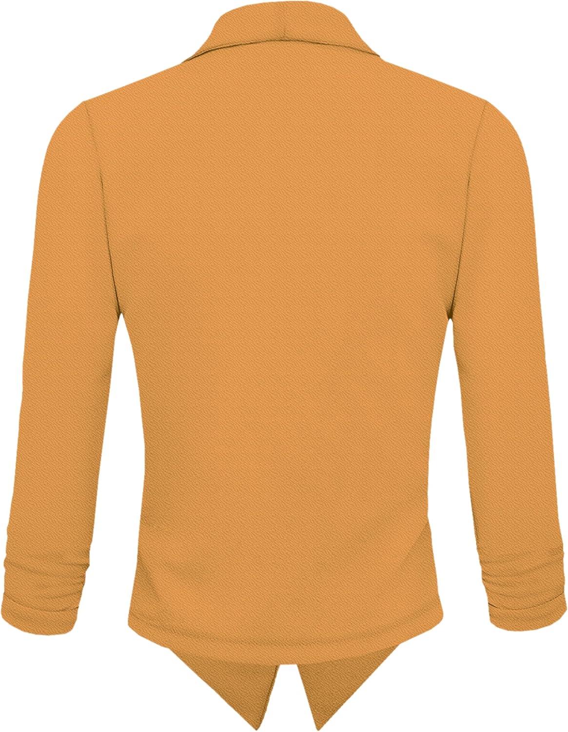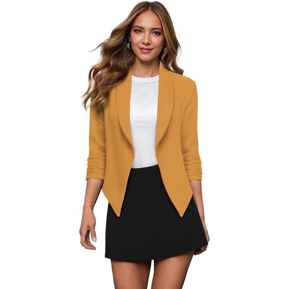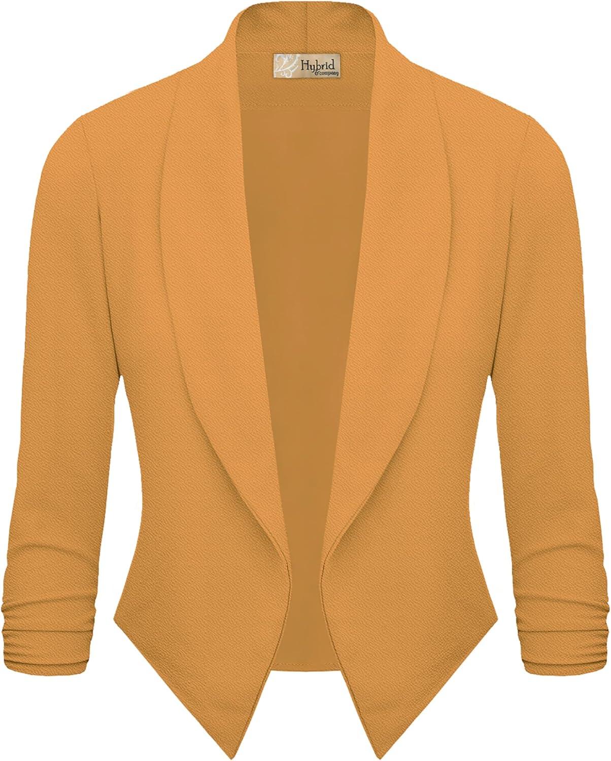Hybrid & Company Lightweight Open Front Cardigan Classic Ruched Sleeve Work Office Blazer Suit Jackets(Mustard)