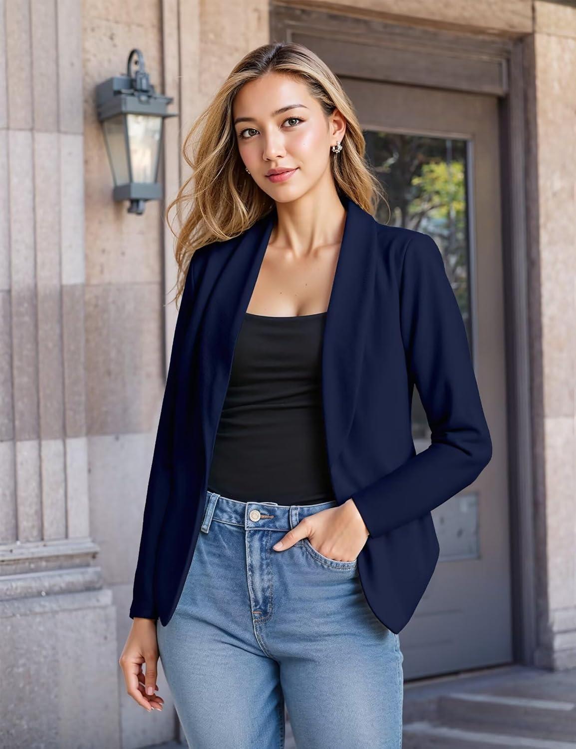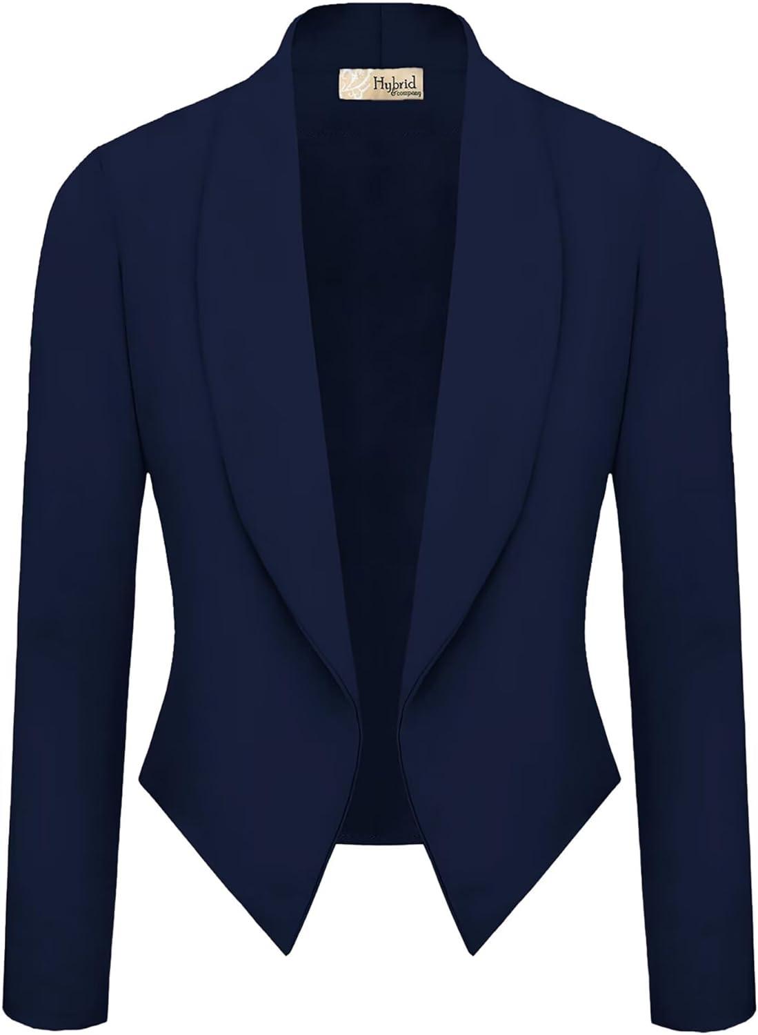 Hybrid & Company Lightweight Open Front Cardigan Classic Ruched Sleeve Work Office Blazer Suit Jackets(Navy-9789)