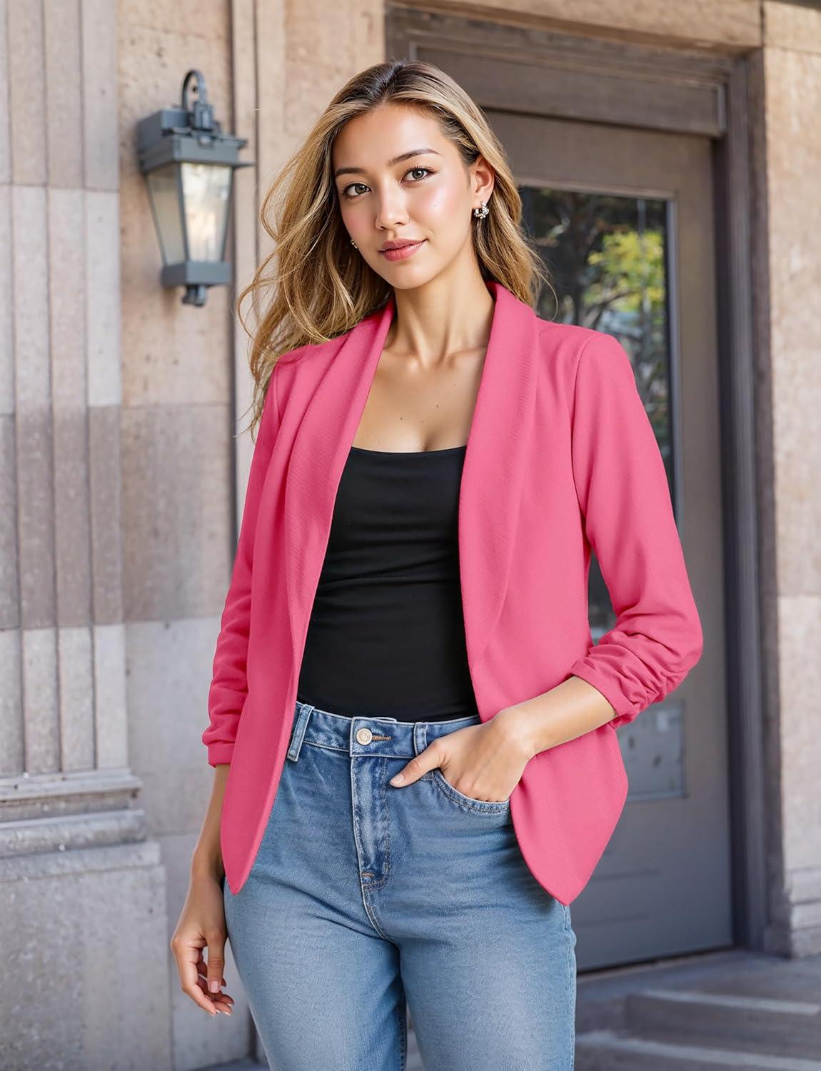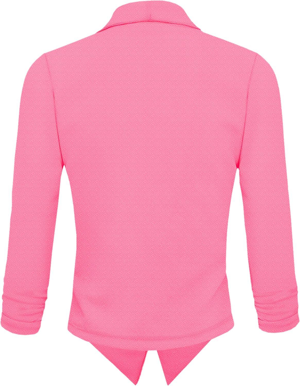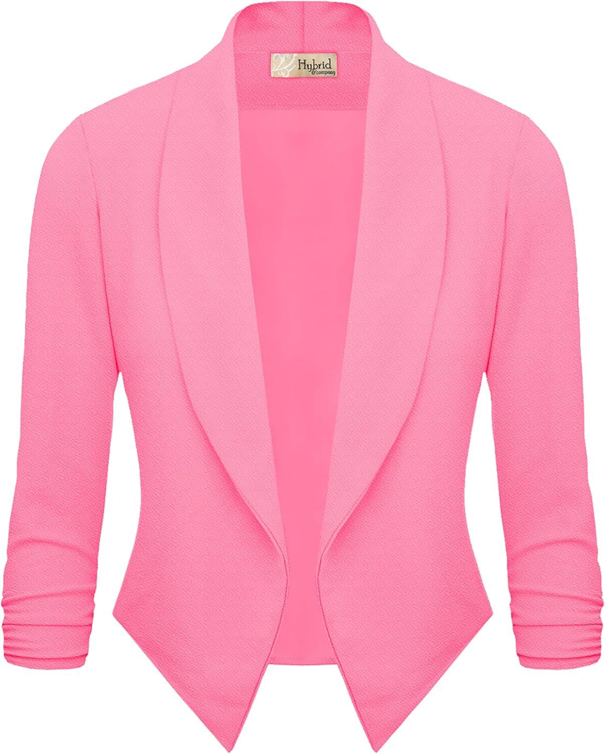 Hybrid & Company Lightweight Open Front Cardigan Classic Ruched Sleeve Work Office Blazer Suit Jackets(Neon Pink)
