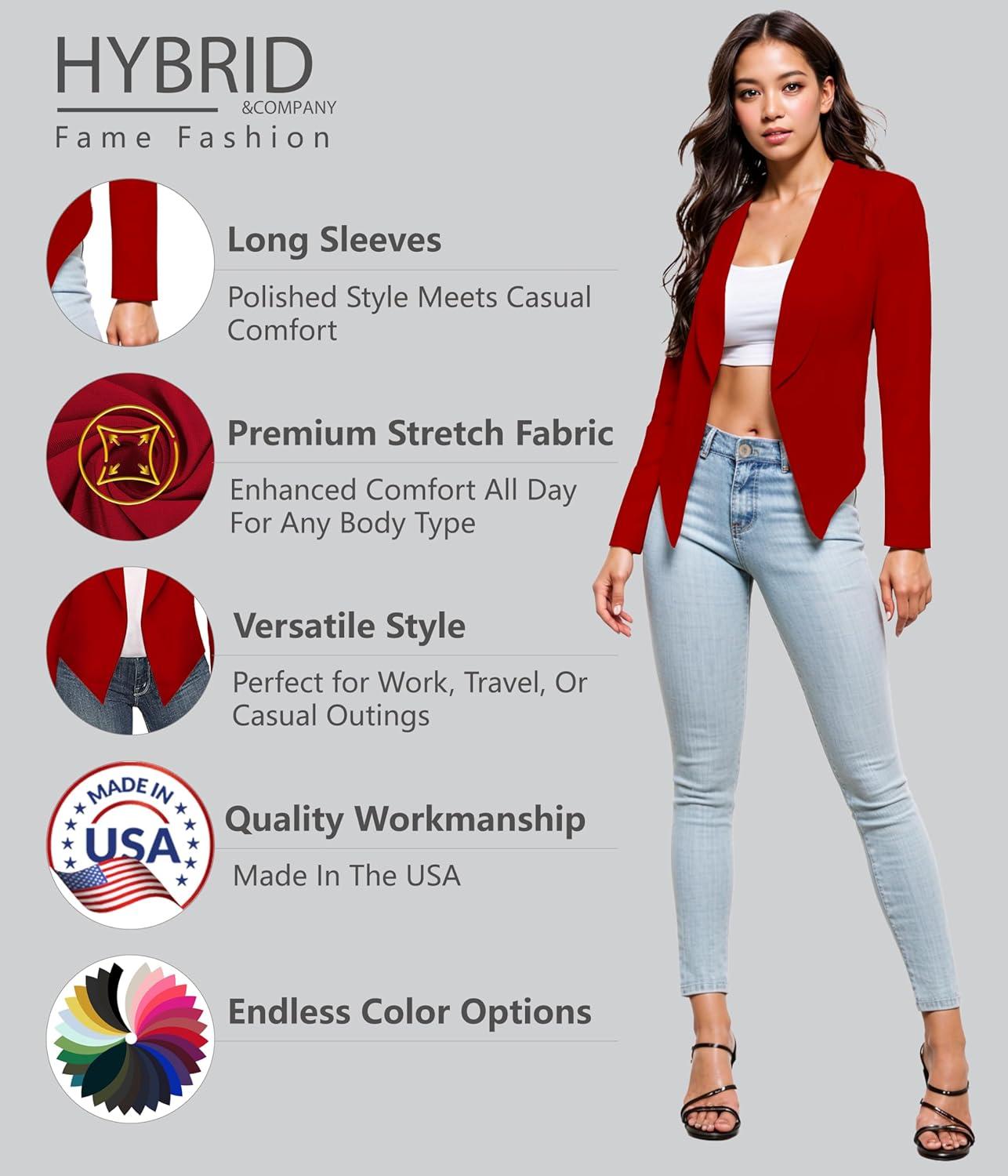 Hybrid & Company Lightweight Open Front Cardigan Classic Ruched Sleeve Work Office Blazer Suit Jackets(Red-9789)