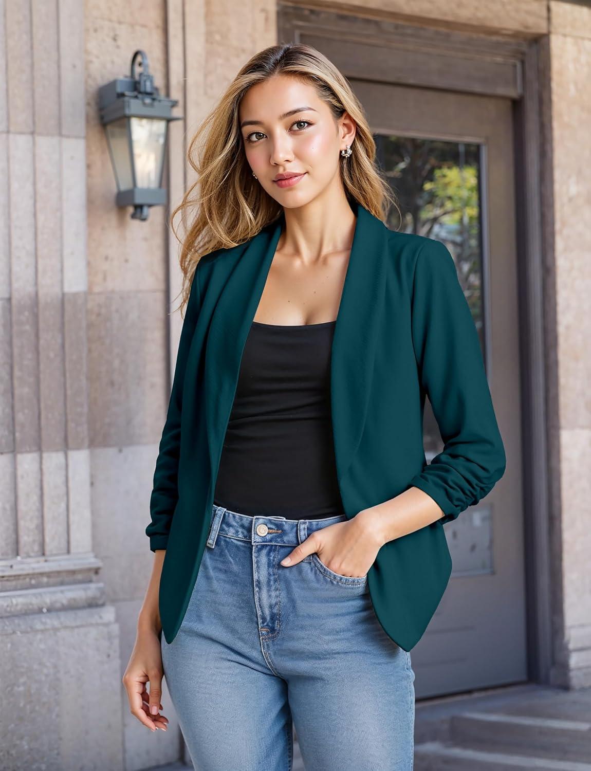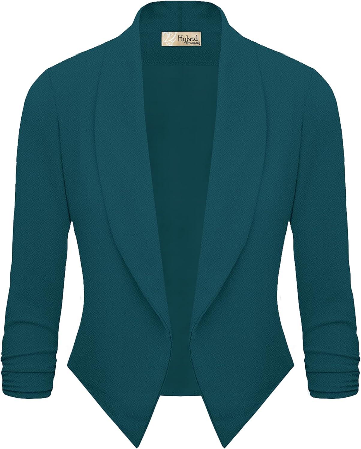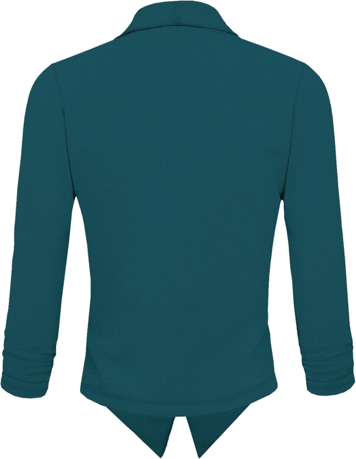 Hybrid & Company Lightweight Open Front Cardigan Classic Ruched Sleeve Work Office Blazer Suit Jackets(Teal)