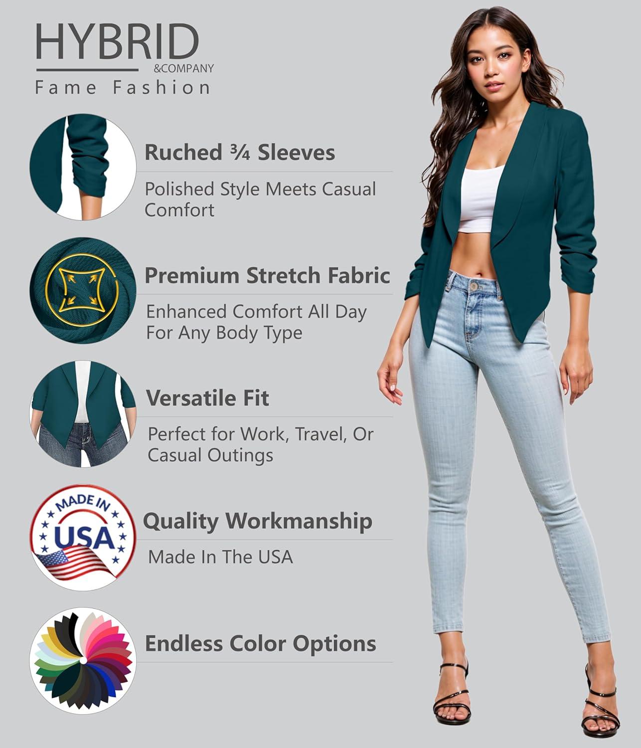 Be the first to review “Hybrid & Company Lightweight Open Front Cardigan Classic Ruched Sleeve Work Office Blazer Suit Jackets(Teal)”