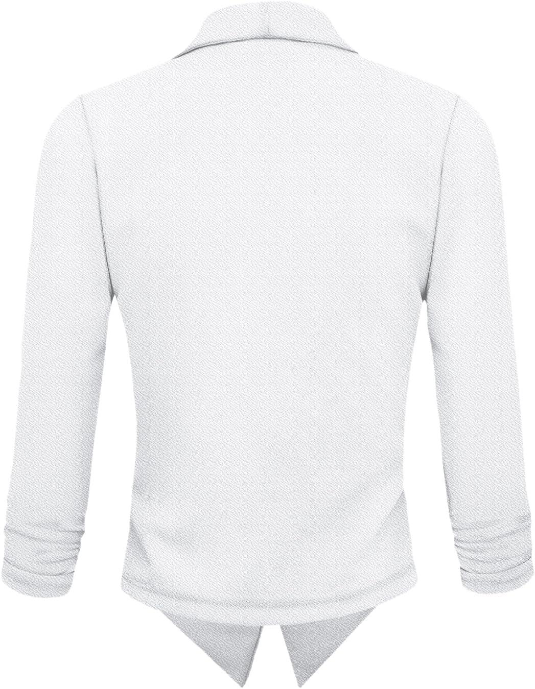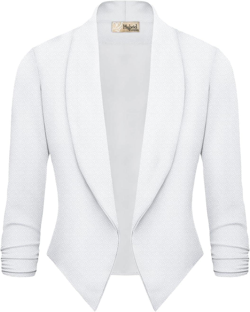 Hybrid & Company Lightweight Open Front Cardigan Classic Ruched Sleeve Work Office Blazer Suit Jackets(White)