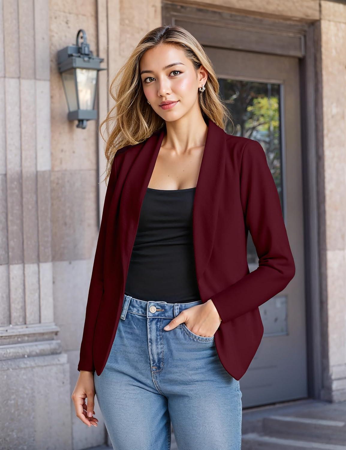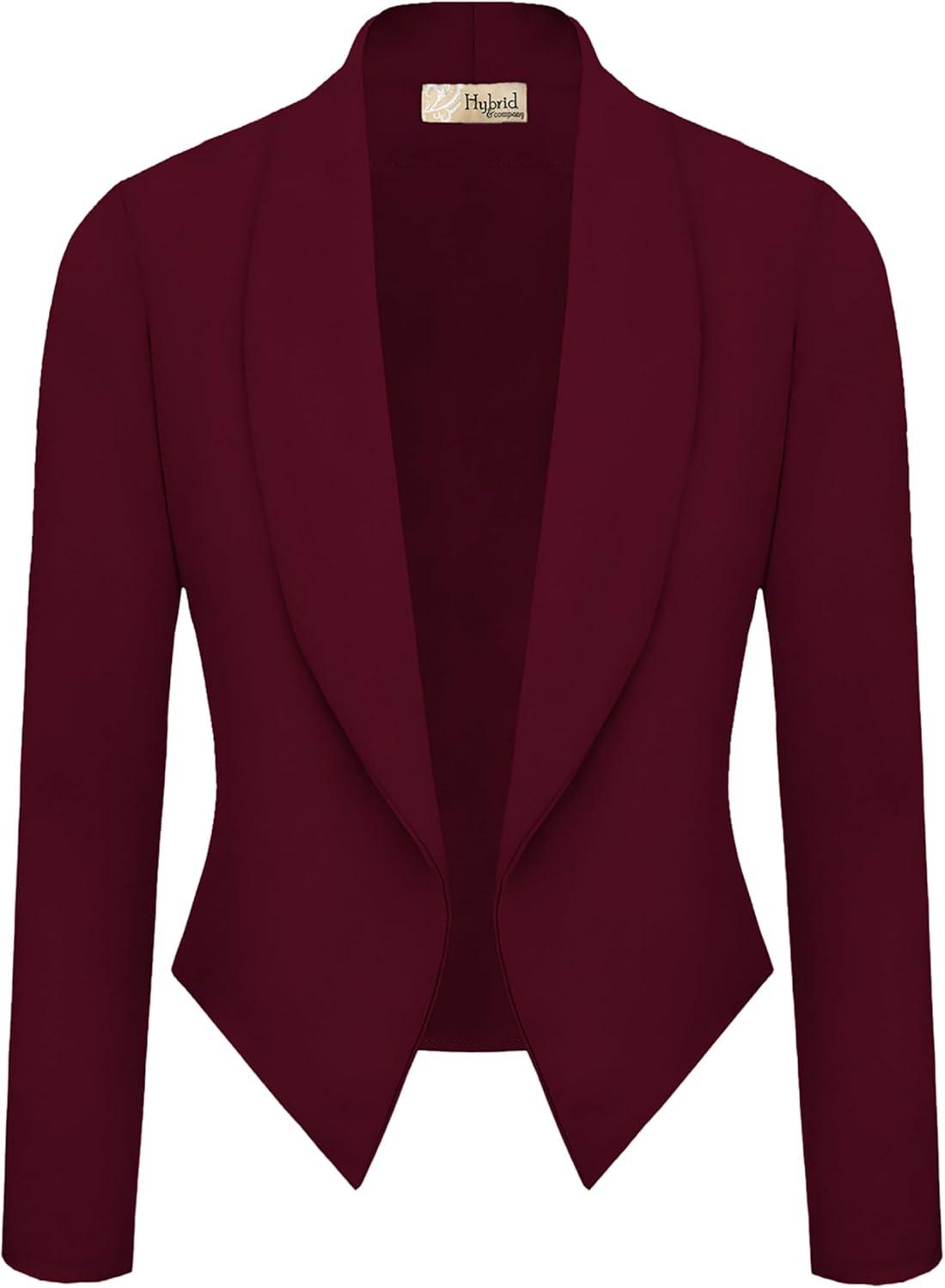 Hybrid & Company Lightweight Open Front Cardigan Classic Ruched Sleeve Work Office Blazer Suit Jackets(Wine-9789)