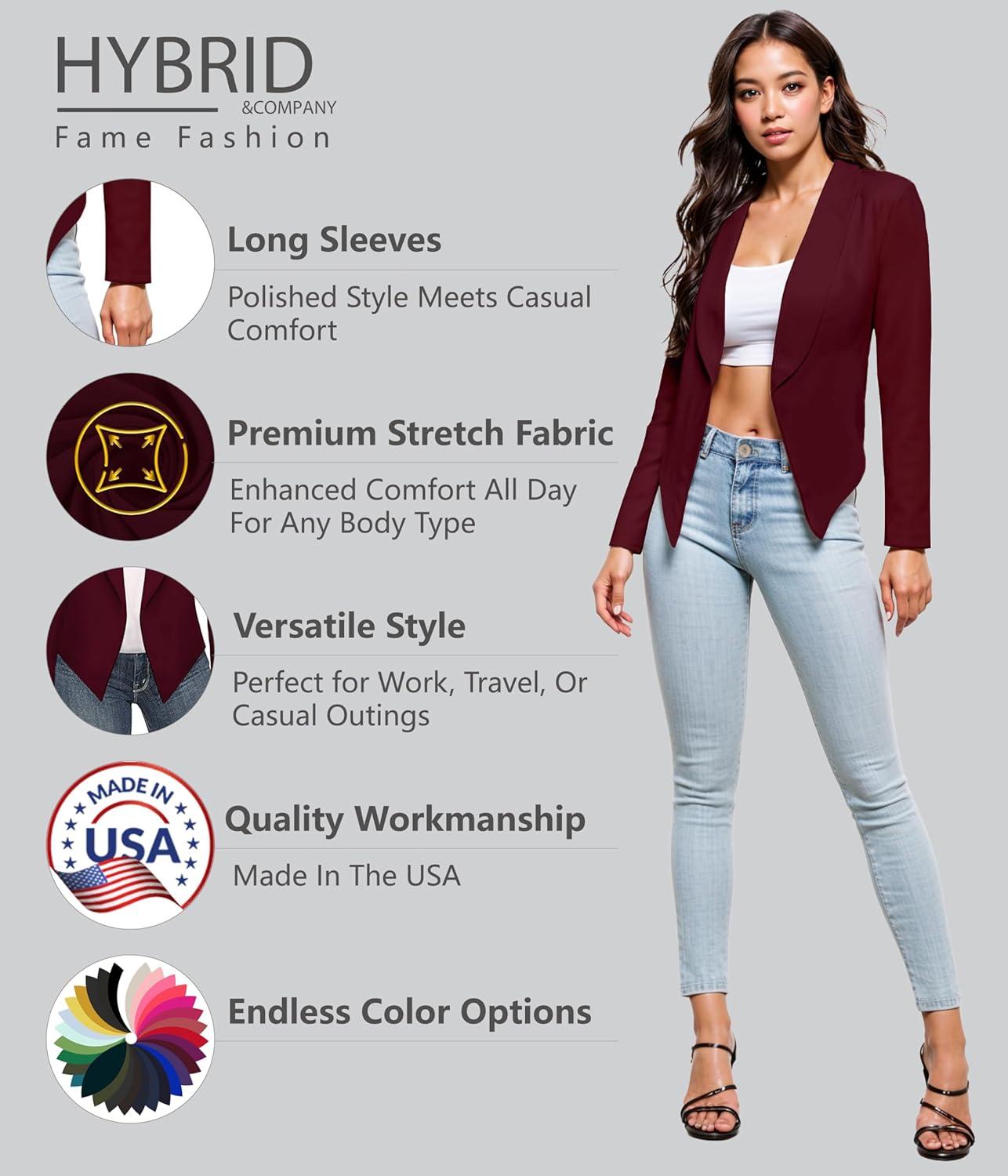 Be the first to review “Hybrid & Company Lightweight Open Front Cardigan Classic Ruched Sleeve Work Office Blazer Suit Jackets(Wine-9789)”