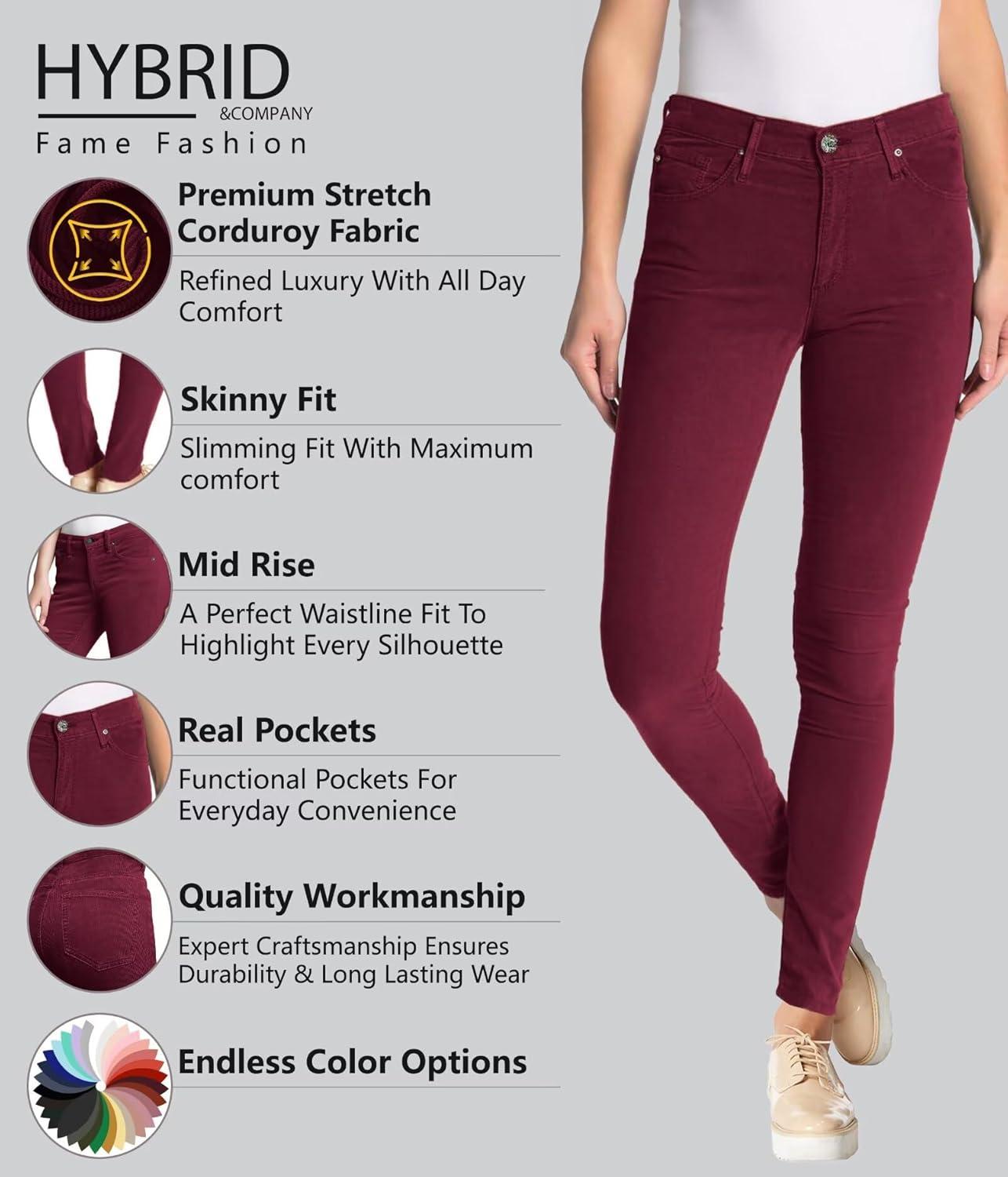Hybrid & Company Super Comfy Stretch Women 5 Pockets Corduroy Skinny Pants(Berry)