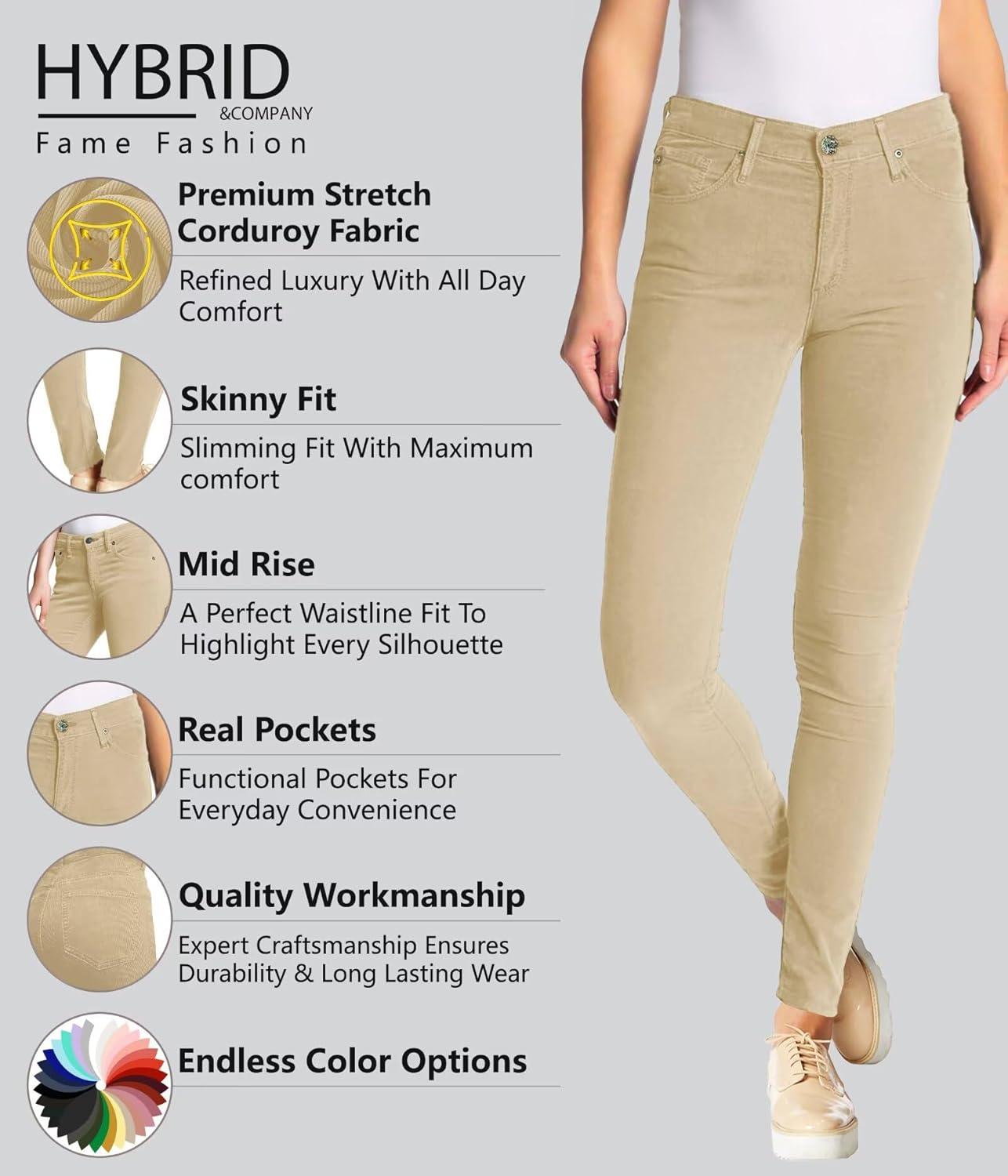 Hybrid & Company Super Comfy Stretch Women 5 Pockets Corduroy Skinny Pants(Light Khak)