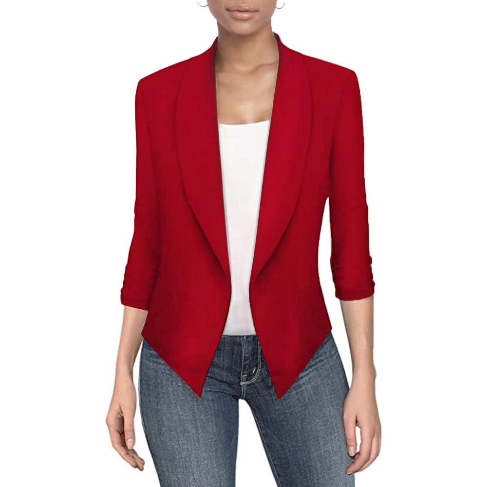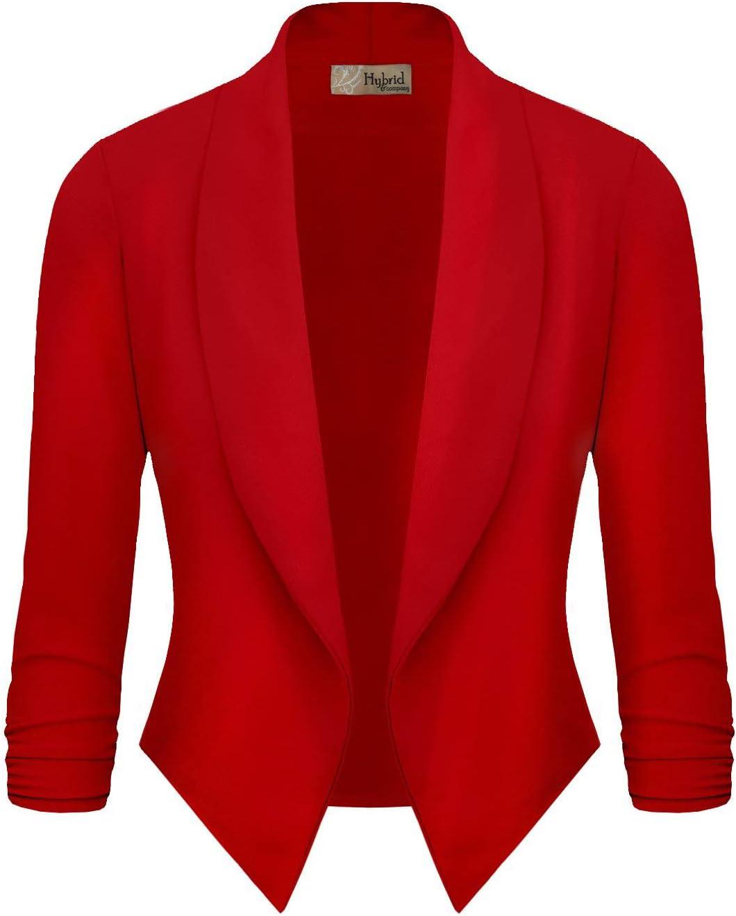 Hybrid & Company Versatile and Modern Women’s Nylon Ponte De Roma Open Blazer Jacket(1073t-red)