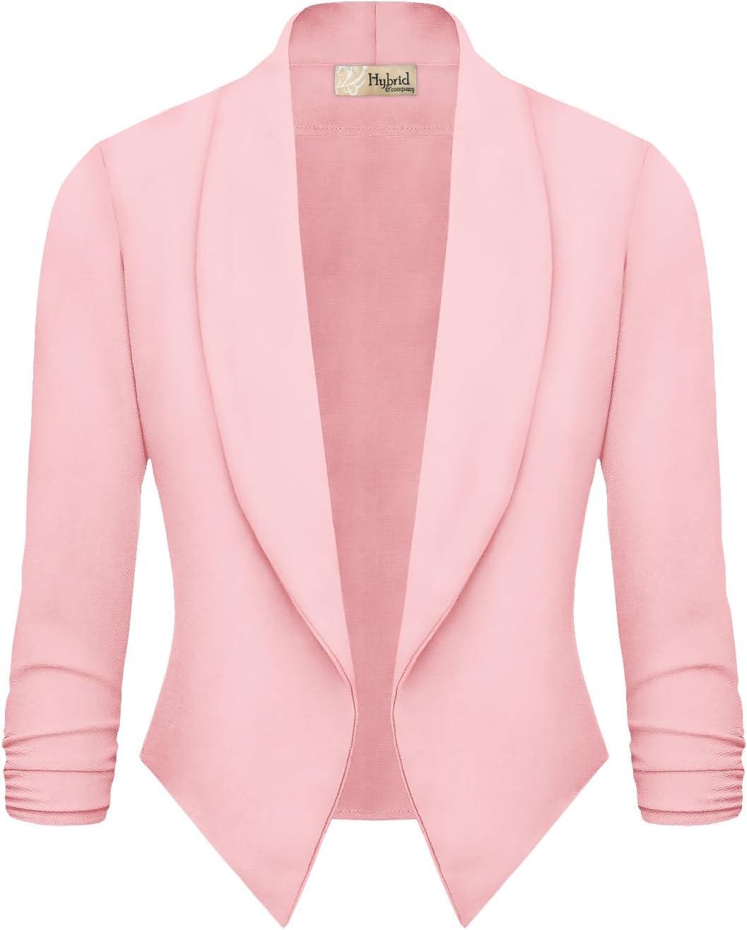 Hybrid & Company Versatile and Modern Women’s Nylon Ponte De Roma Open Blazer Jacket(Jk1133-1073t-blush)