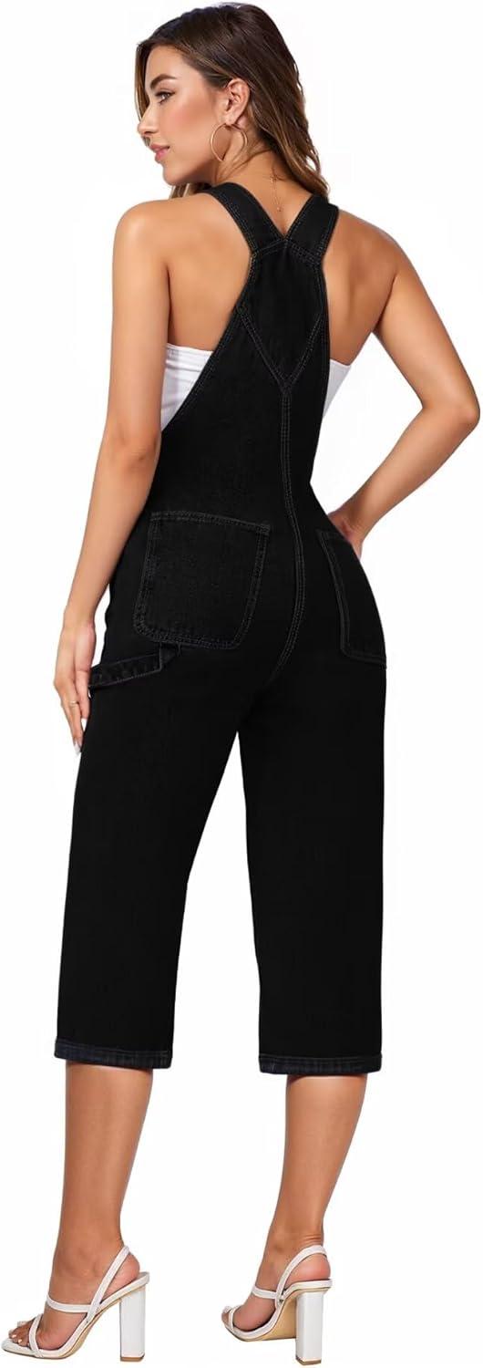 Hybrid & Company Women Denim Shorts Rompers Sleeveless Adjustable Strap Overalls Cross Back Jumpsuit(Qvj156998-black)
