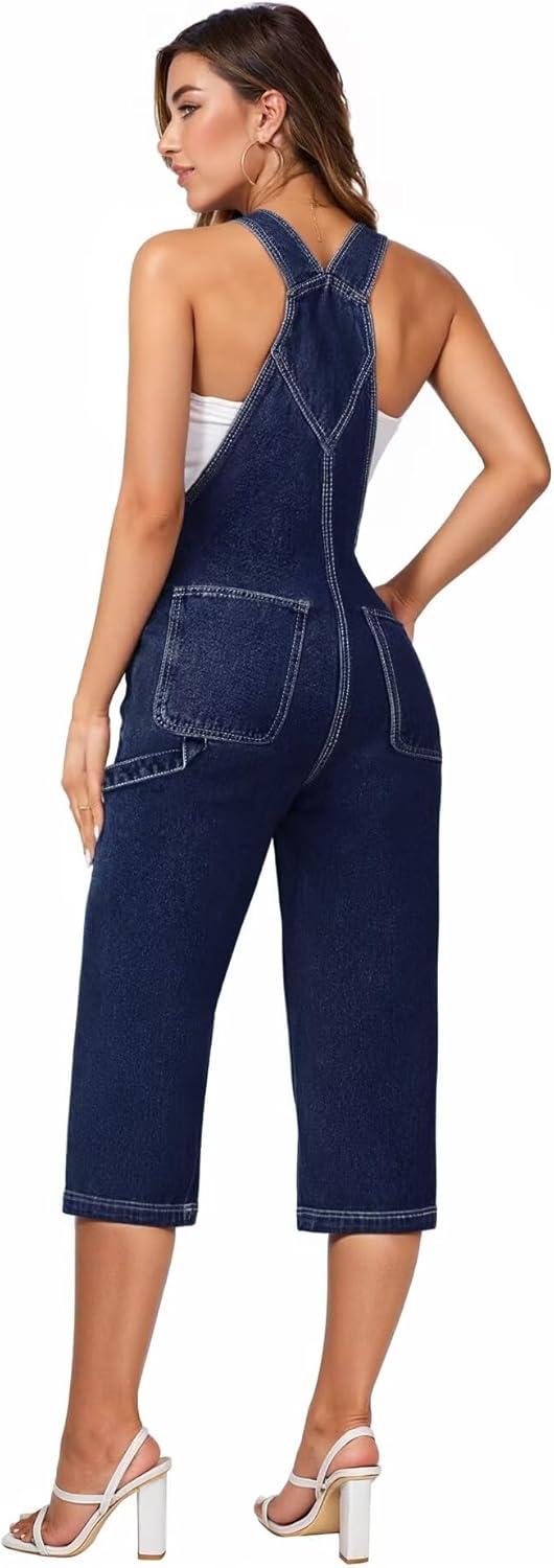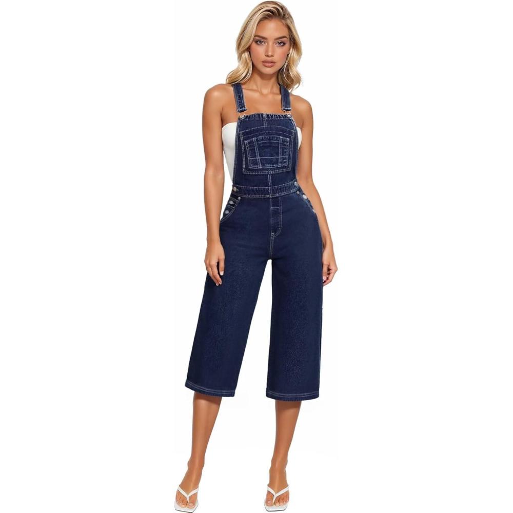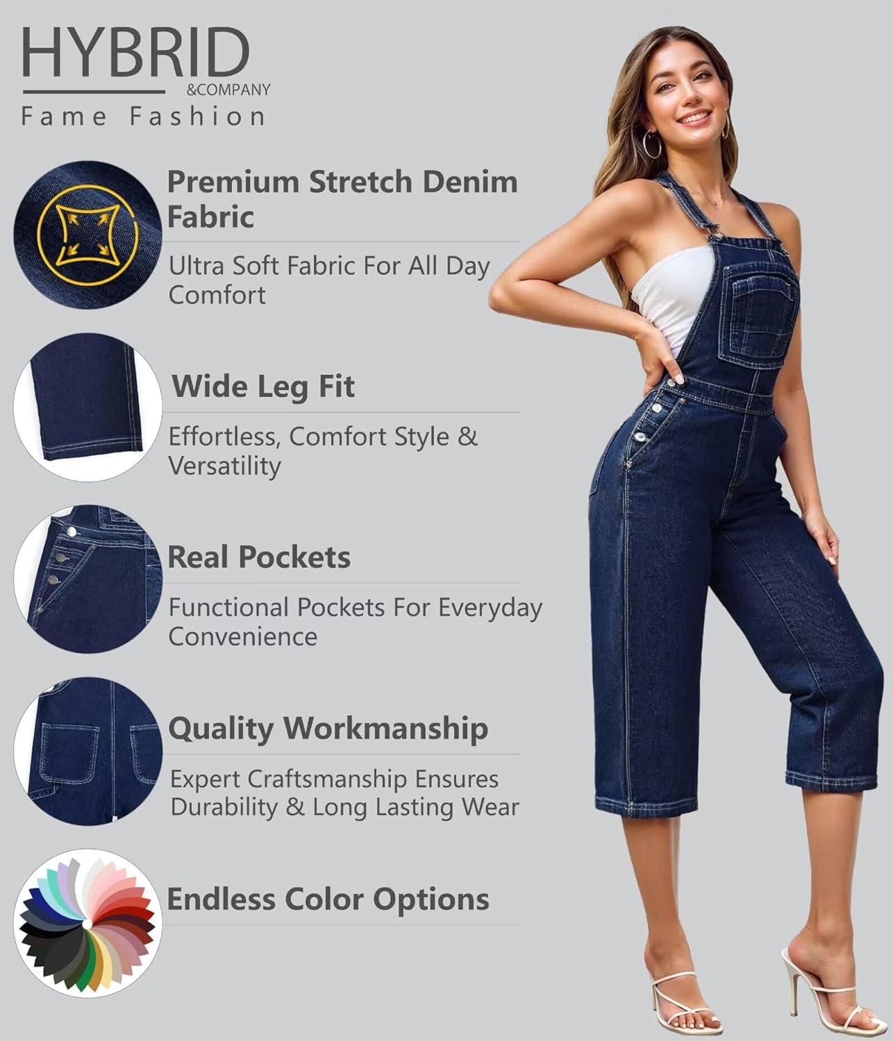 Hybrid & Company Women Denim Shorts Rompers Sleeveless Adjustable Strap Overalls Cross Back Jumpsuit(Qvj156998-darkwash)