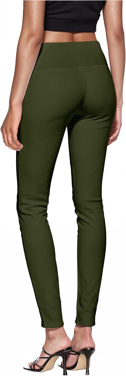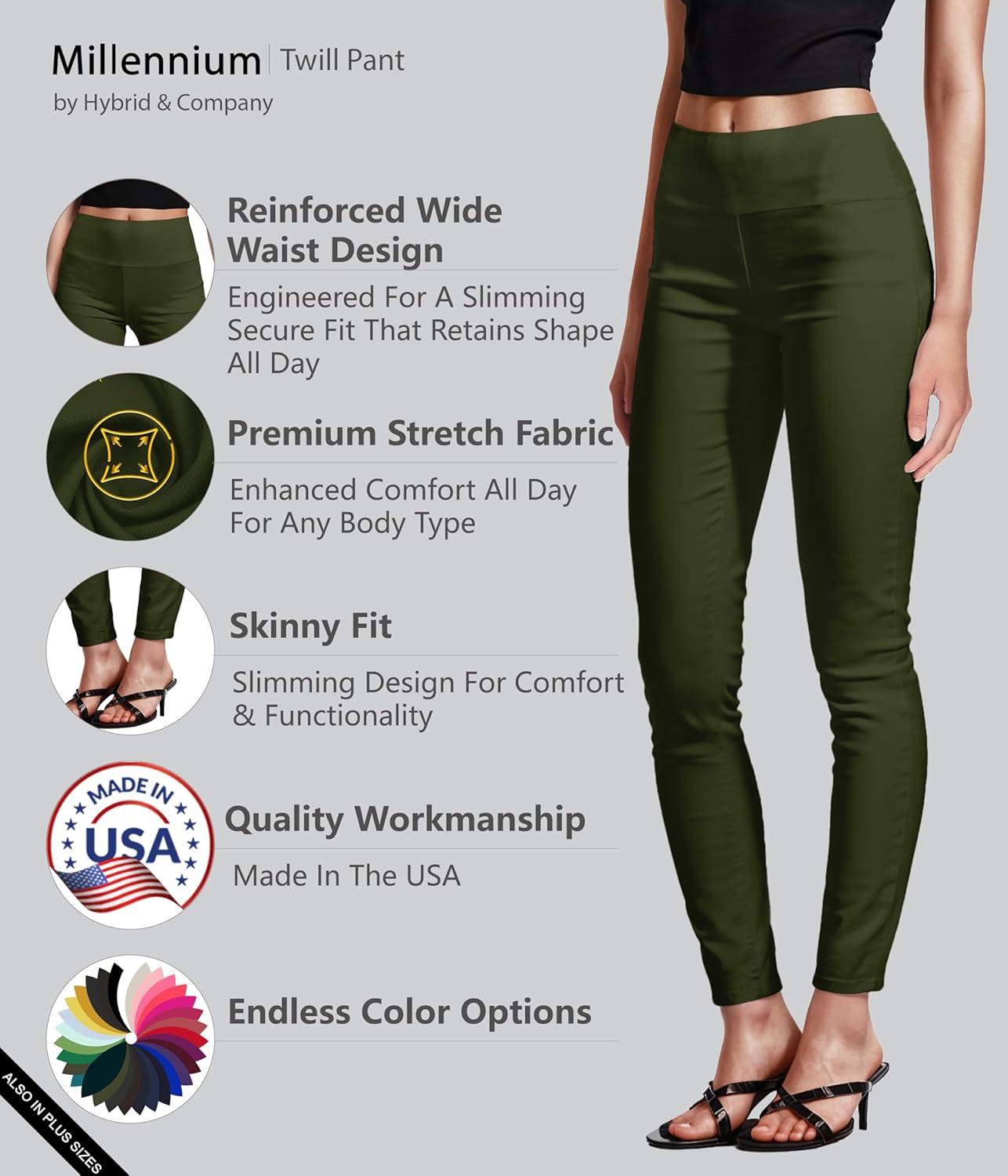 Hybrid & Company Women Stretch Skinny Dress Pants Nylon Ponte Pull On Office Leggings Trousers(Olive)