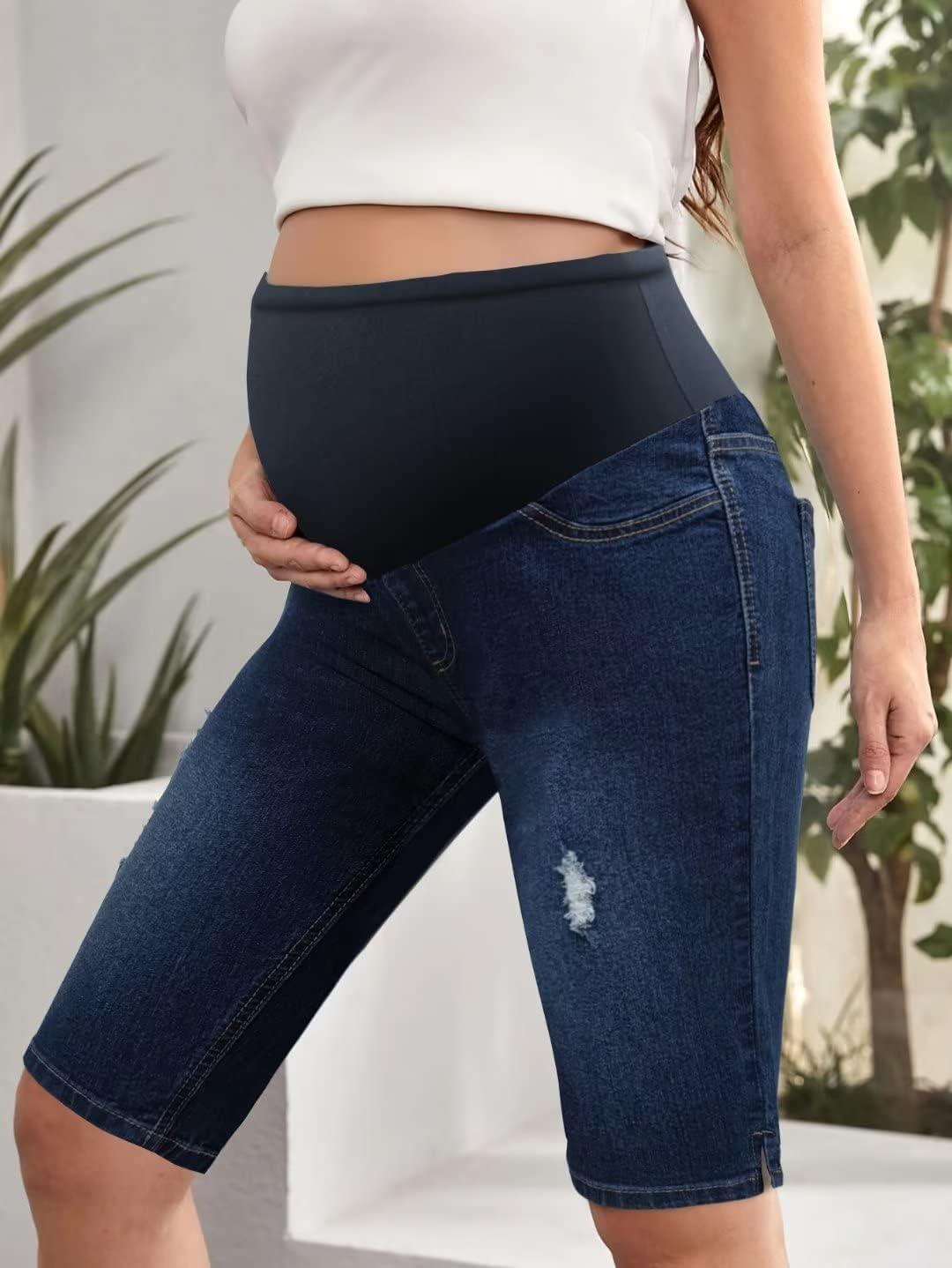 Hybrid & Company Women Super Comfy Stretch Maternity Bermuda Short(Bermuda-bm5464s-darkwash)