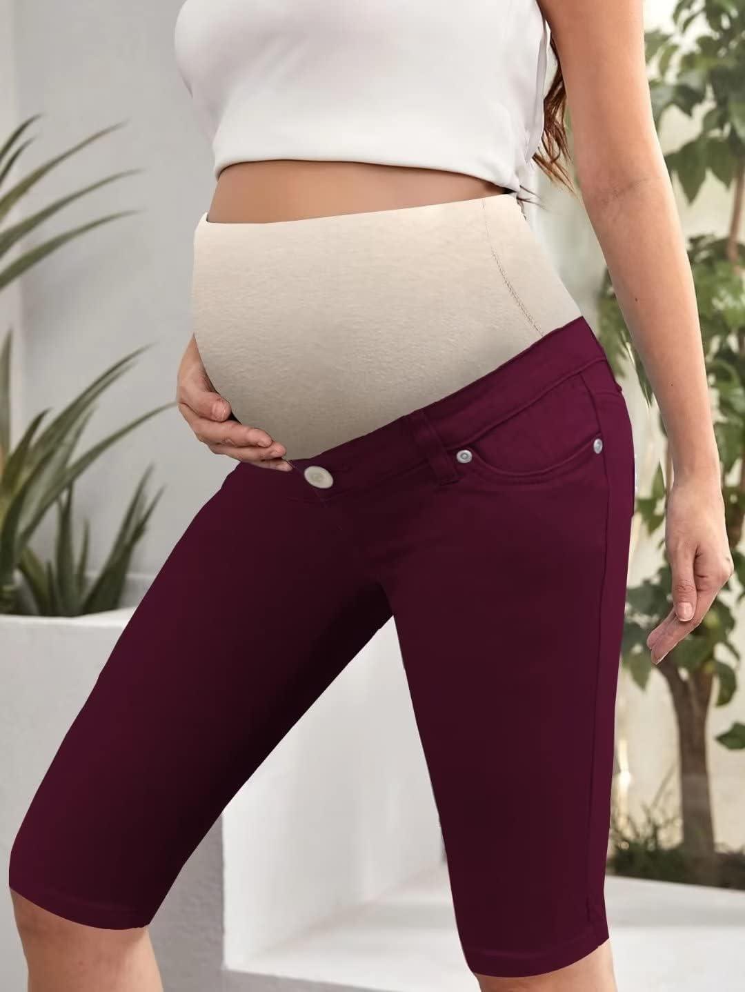 Hybrid & Company Women Super Comfy Stretch Maternity Bermuda Short(Bermuda-maroon)