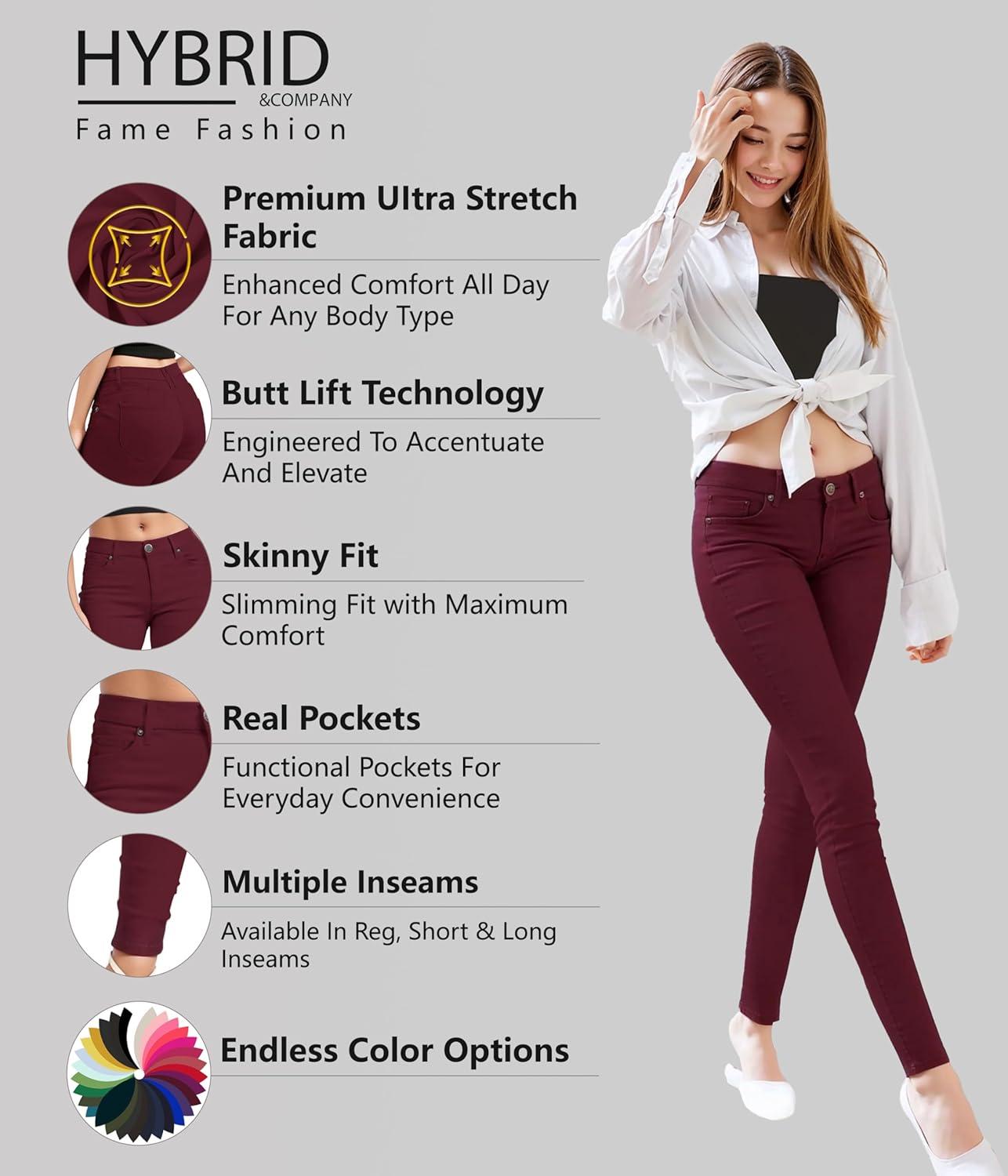 Hybrid & Company Women’s Butt Lift Stretch Denim Jeans(Wine)