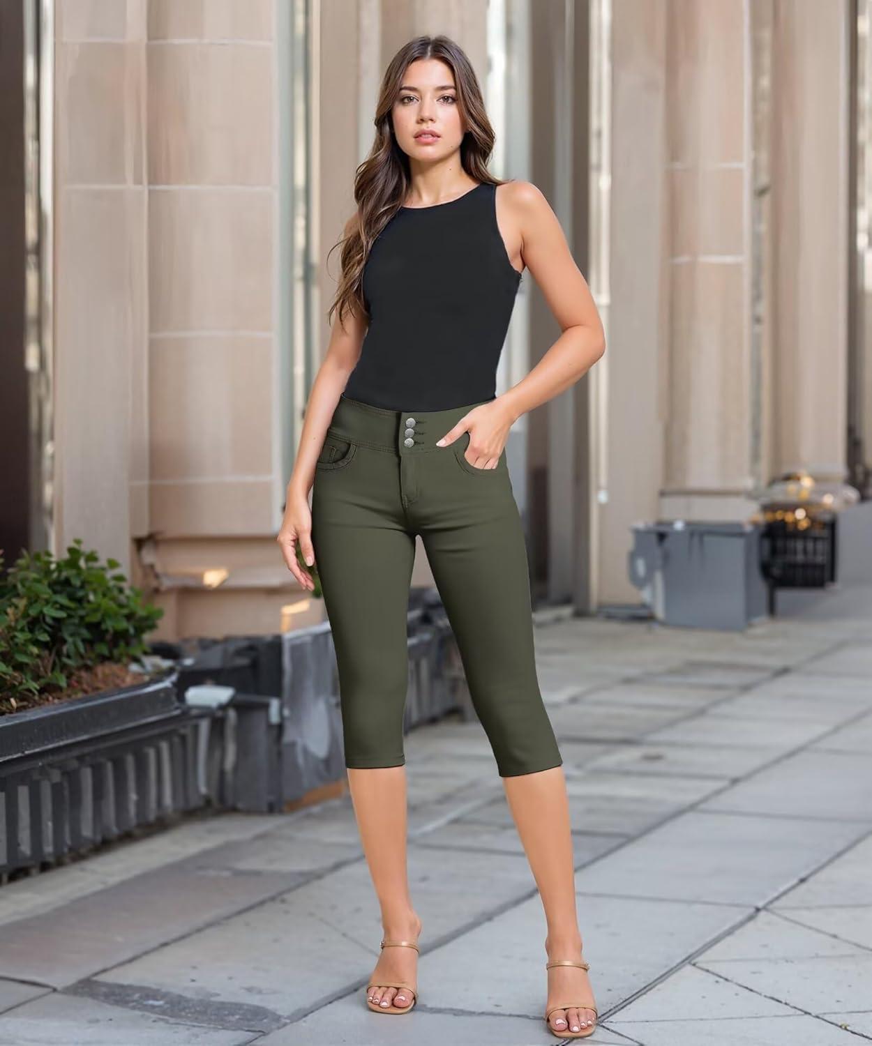 Hybrid & Company Women 3 Button High Waist Pant/Bermuda/Capri/Short is perfect for you! With the perfect amount of stretch, these denim pant are sure to become one of your favorite wardrobe staples. They come in a variety of beautiful colors and inseam length that will match any outfit. These pants are designed to lift and shape your butt while keeping you comfortable all day long. Featuring an elastic waistband with three buttons for adjustable sizing, high-rise fit through the hips, and skinny leg openings that hug every curves.