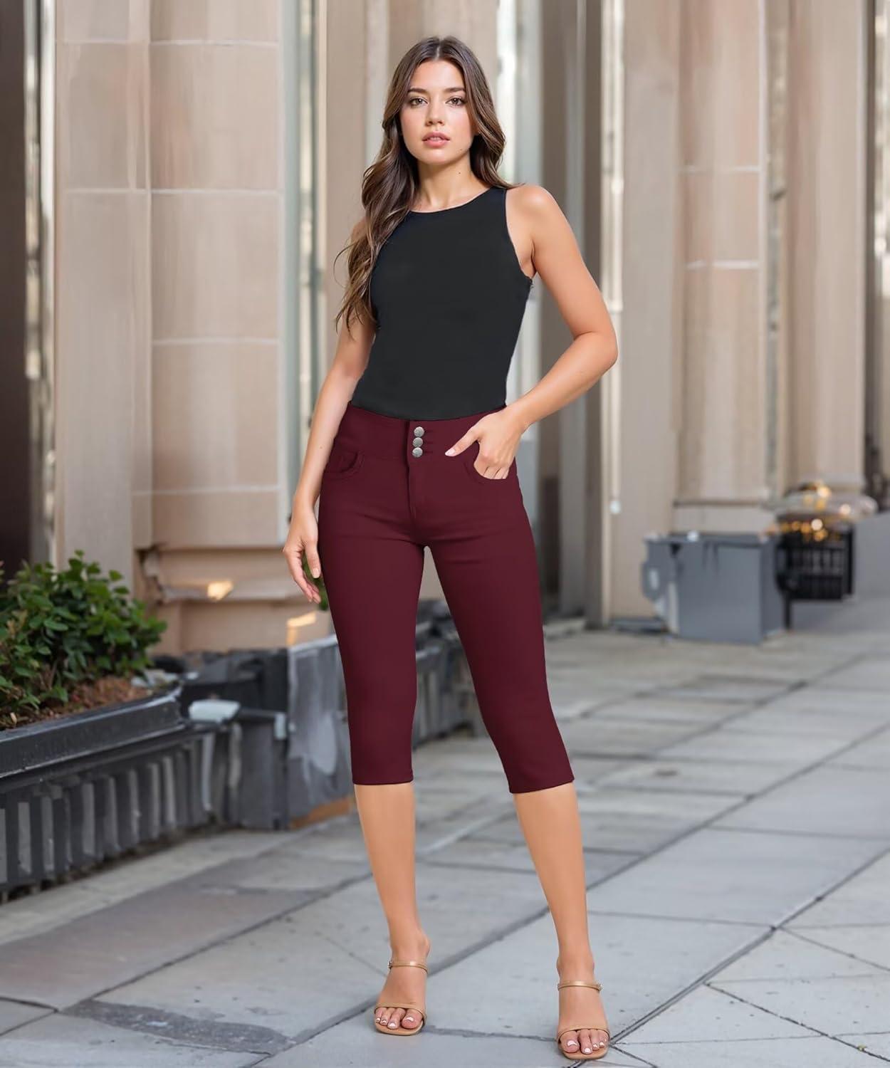 Hybrid & Company Women 3 Button High Waist Pant/Bermuda/Capri/Short is perfect for you! With the perfect amount of stretch, these denim pant are sure to become one of your favorite wardrobe staples. They come in a variety of beautiful colors and inseam length that will match any outfit. These pants are designed to lift and shape your butt while keeping you comfortable all day long. Featuring an elastic waistband with three buttons for adjustable sizing, high-rise fit through the hips, and skinny leg openings that hug every curves.