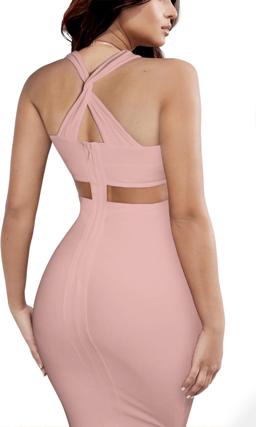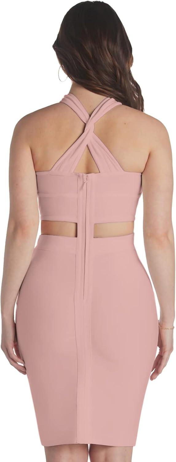 Hybrid & Company Womens Cross Bandage Fashion Hollow Out Sexy Sleeveless Dress(Drbd020-blush)