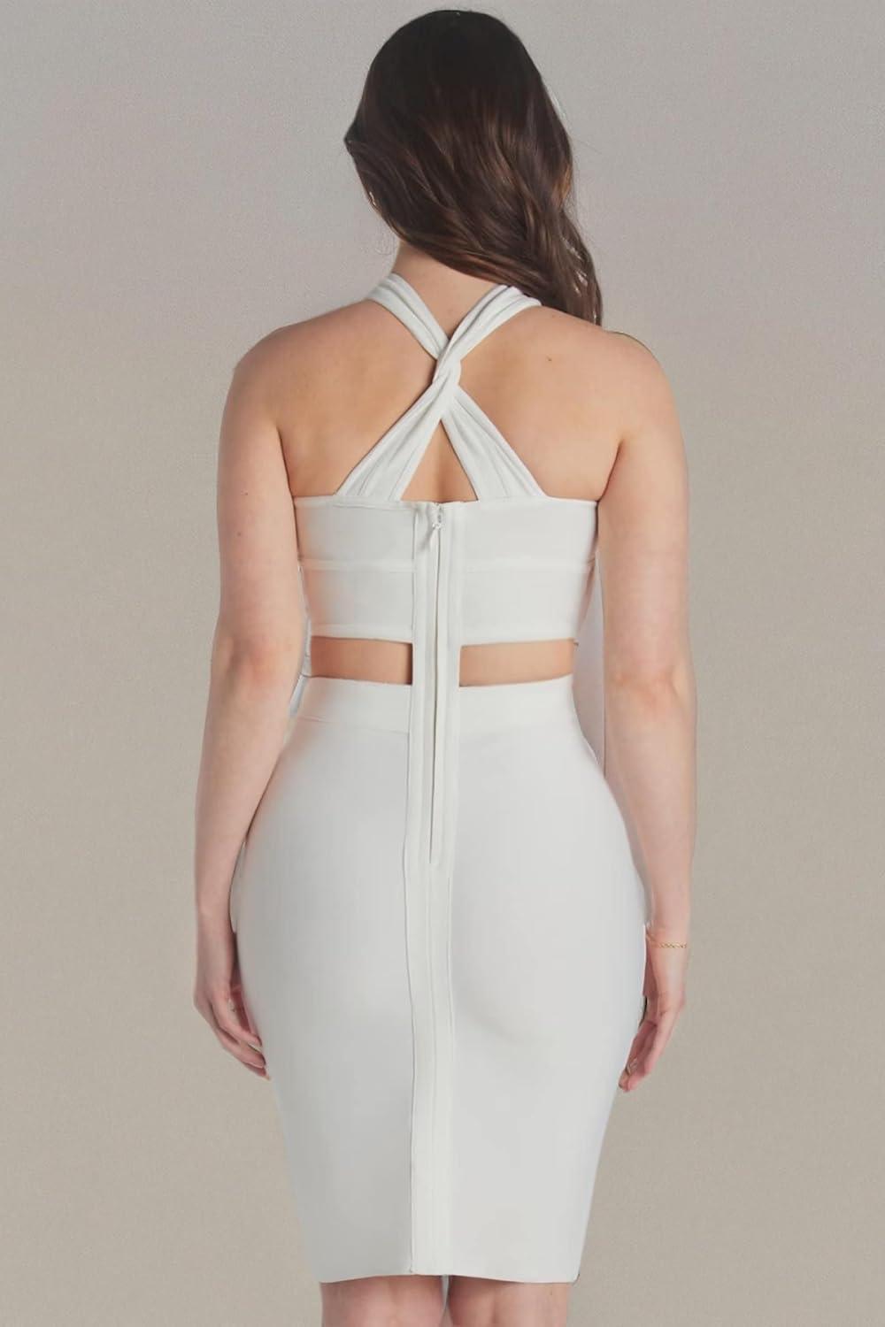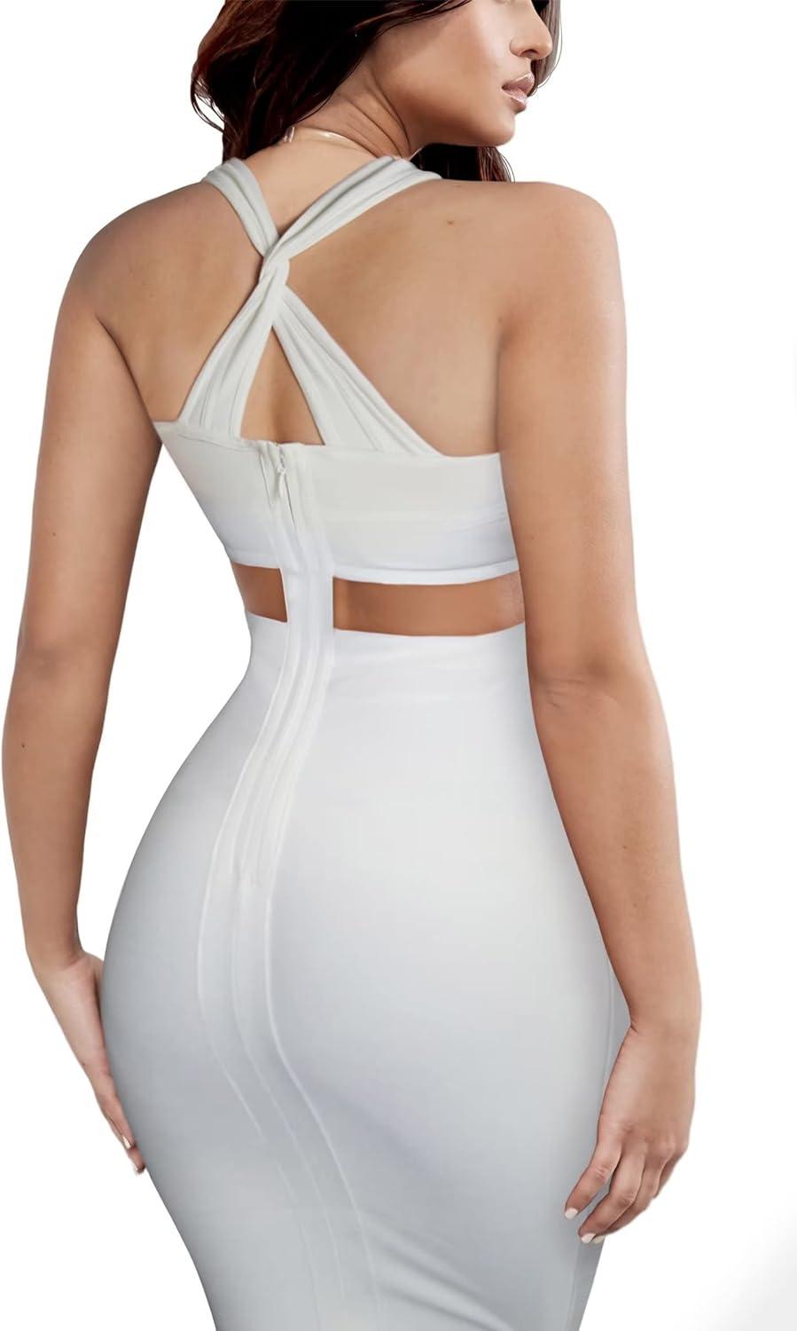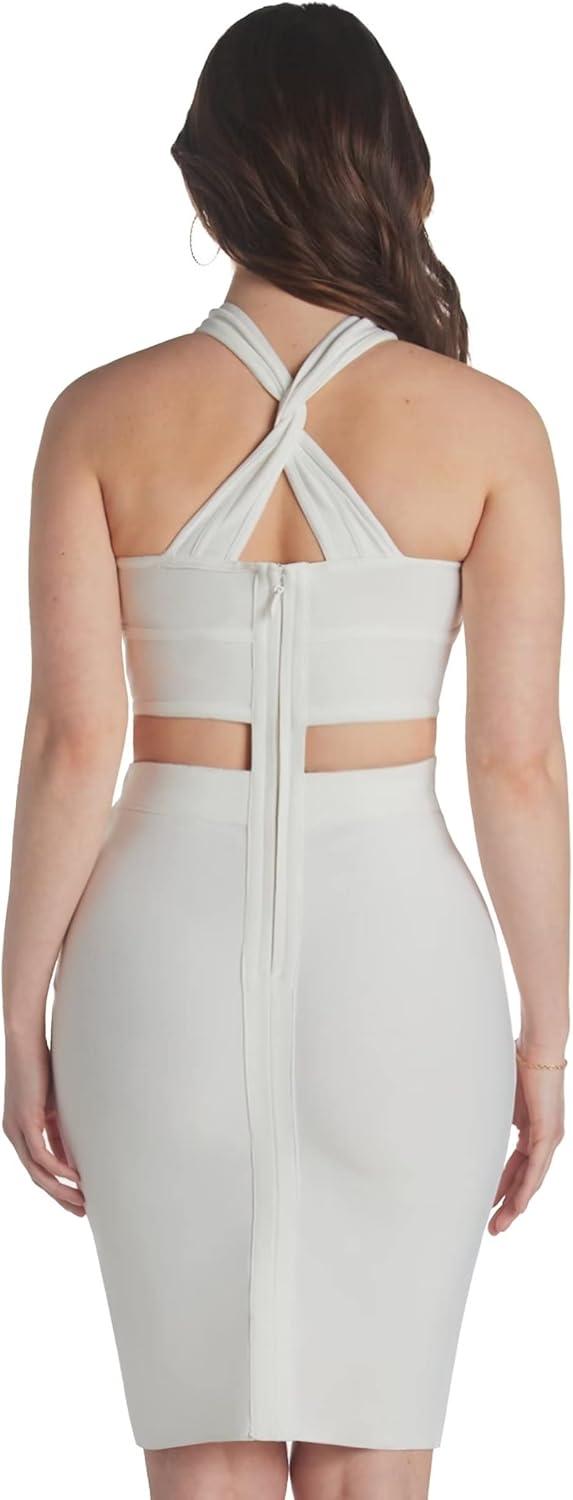 Hybrid & Company Womens Cross Bandage Fashion Hollow Out Sexy Sleeveless Dress(Drbd020-white)