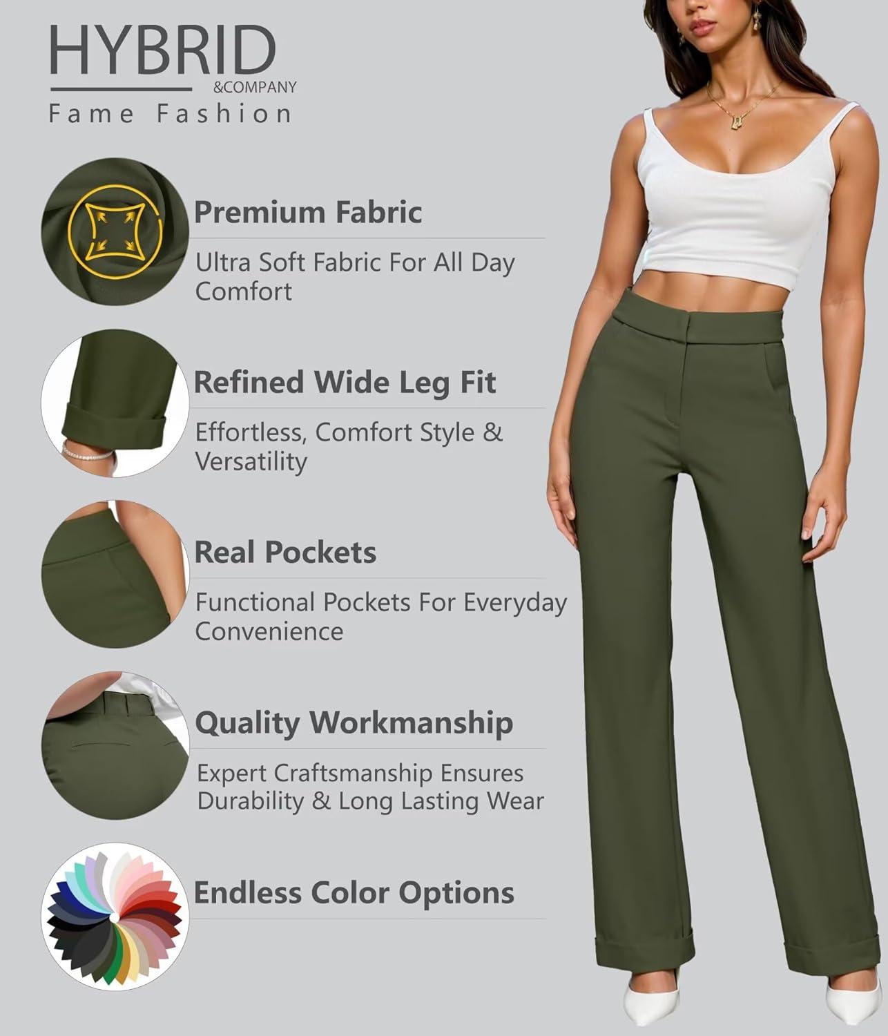Hybrid & Company Women’s High Waisted Straight Leg Suit Pants Business Work Casual Slacks Trousers(Olive)