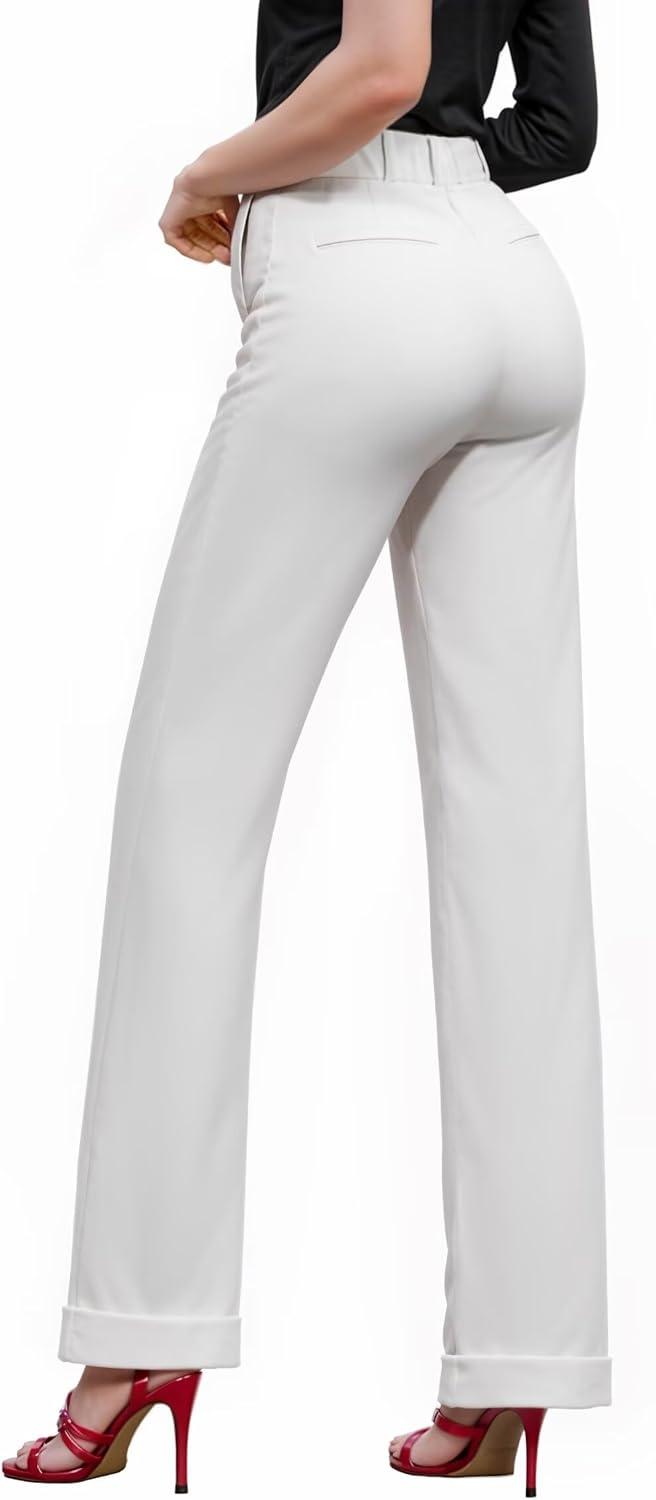Hybrid & Company Women’s High Waisted Straight Leg Suit Pants Business Work Casual Slacks Trousers(White)