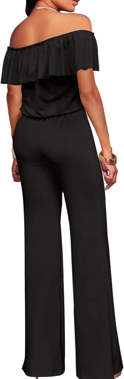 Hybrid & Company Women’s Lightweight Off Shoulder Jumpsuit – Stretchy Wide Leg Romper – Casual to Formal One Piece Outfit(Black)