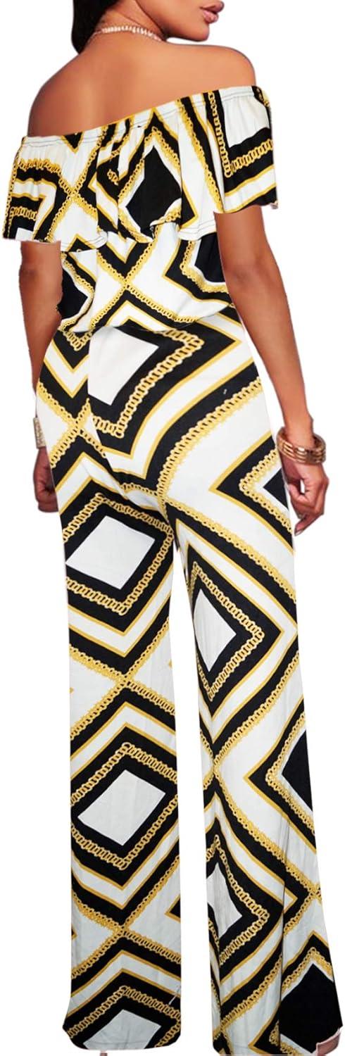Hybrid & Company Women’s Lightweight Off Shoulder Jumpsuit – Stretchy Wide Leg Romper – Casual to Formal One Piece Outfit(K199233-navymulti)
