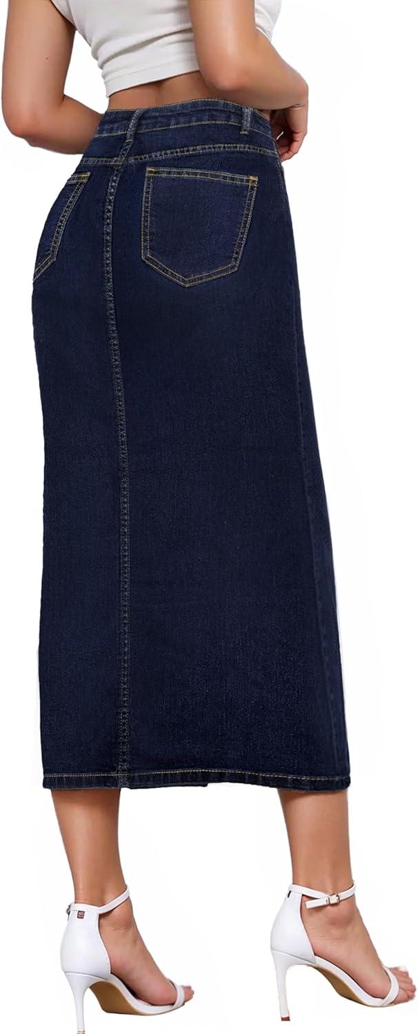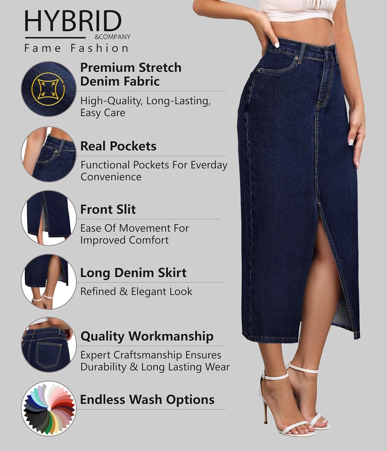 Hybrid & Company Women’s Long Denim Skirt – Stretch Jean Skirt for Office and Casual Wear(Indigo)