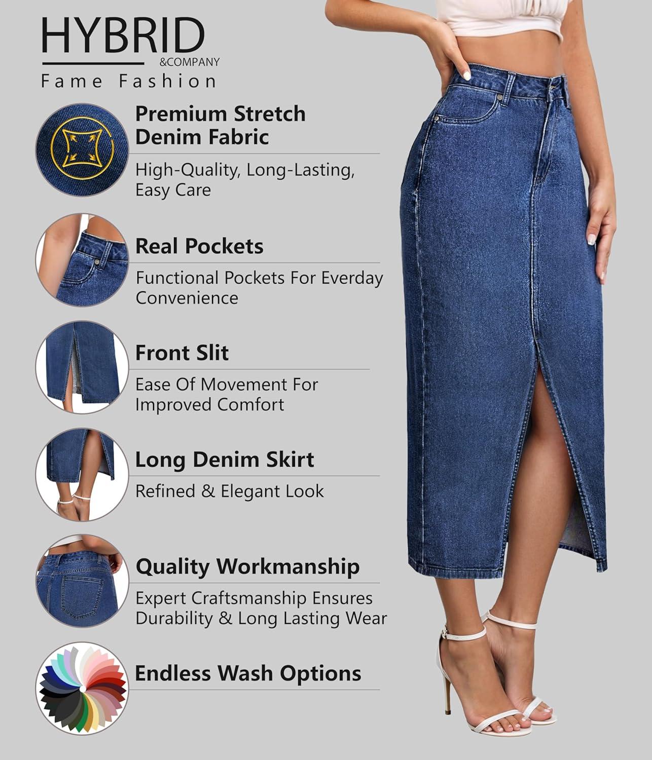 Hybrid & Company Women’s Long Denim Skirt – Stretch Jean Skirt for Office and Casual Wear(Sk152333-darkwash)