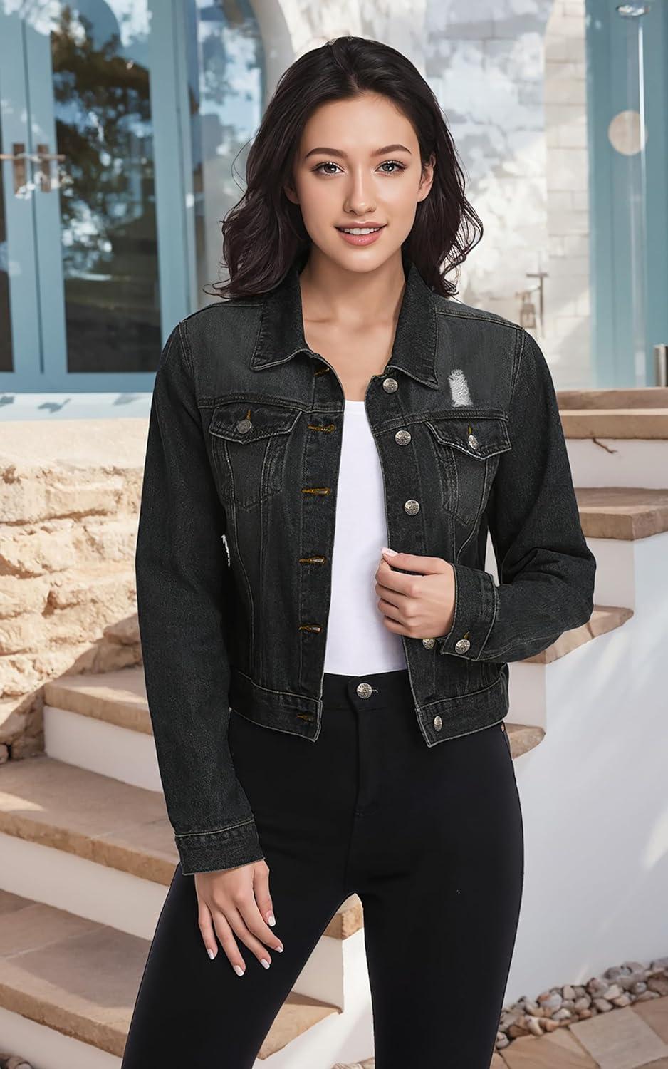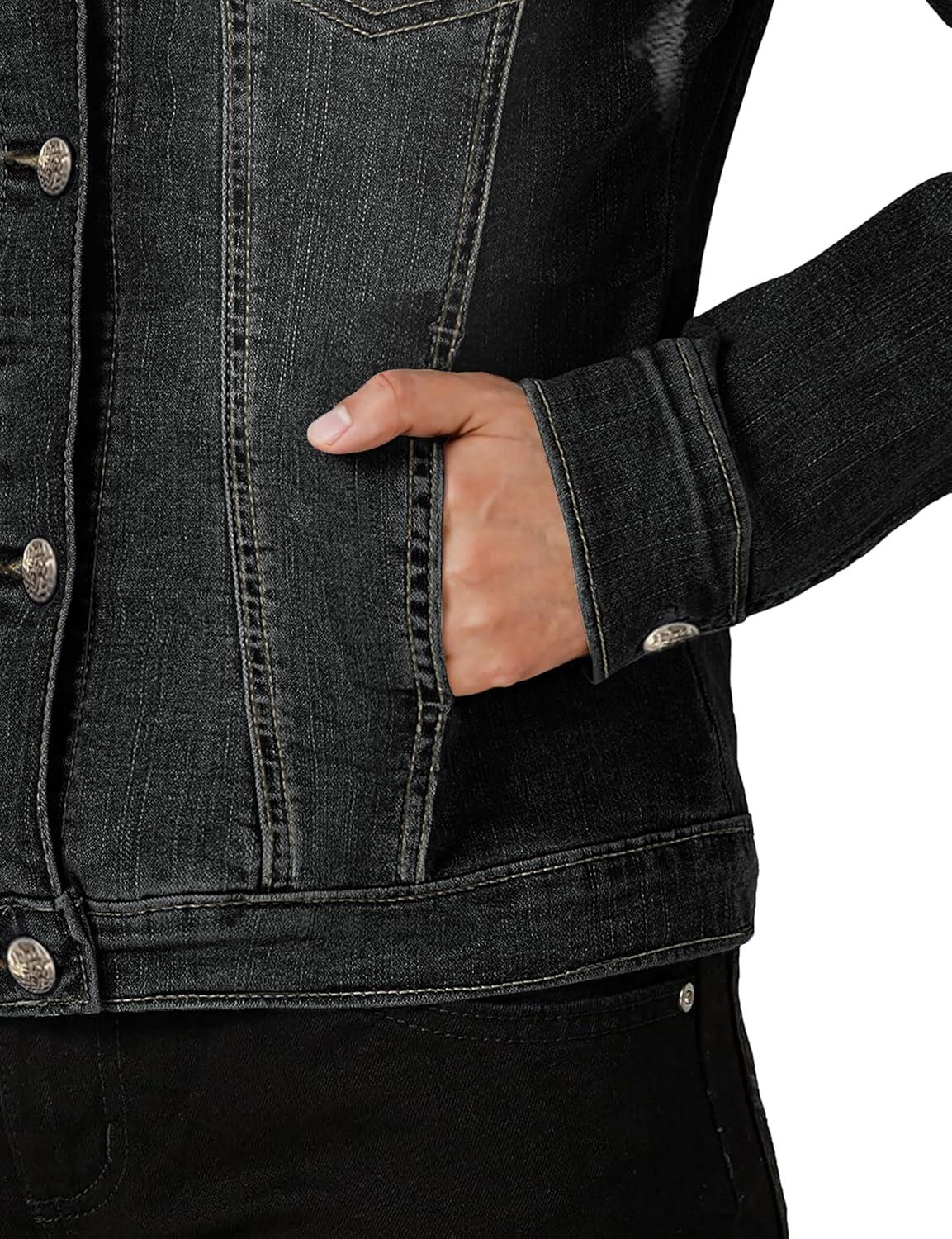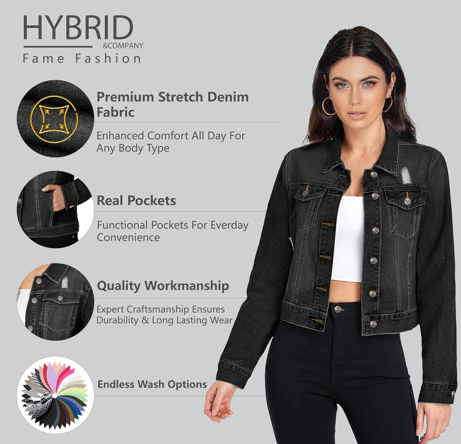 Hybrid & Company Women’s Long Sleeve Denim Jackets Basic Button Down Jean Jacket with Pockets(Jk37350-black)