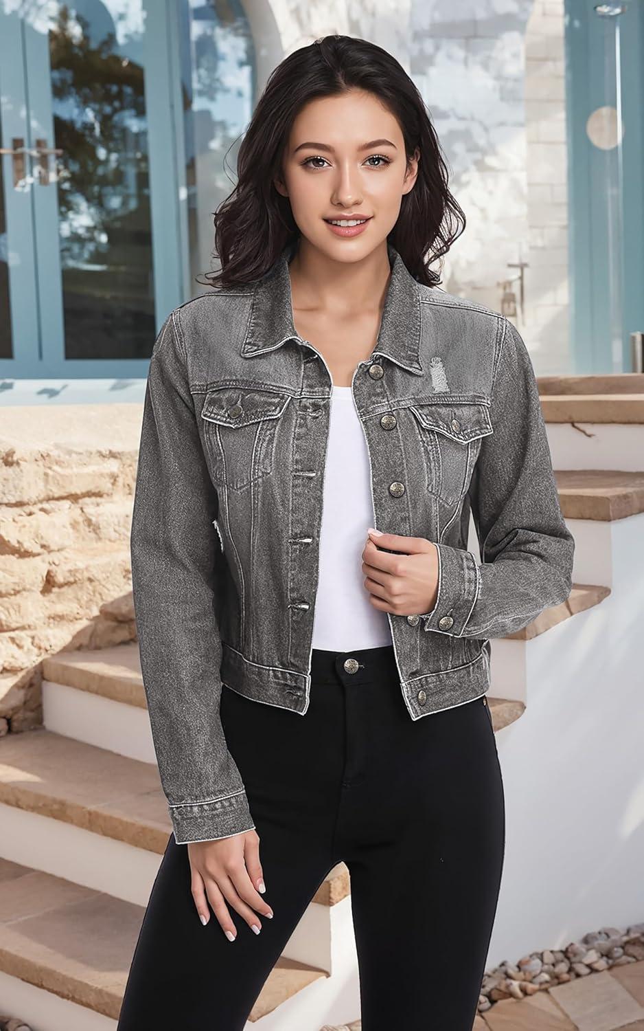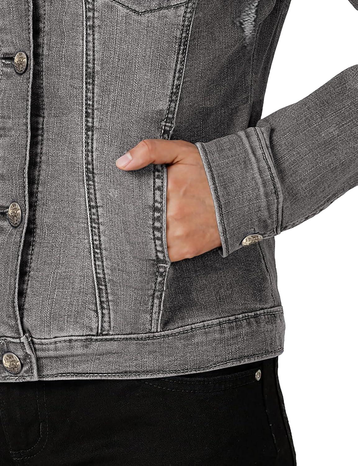 Hybrid & Company Women’s Long Sleeve Denim Jackets Basic Button Down Jean Jacket with Pockets(Jk37350-grey)