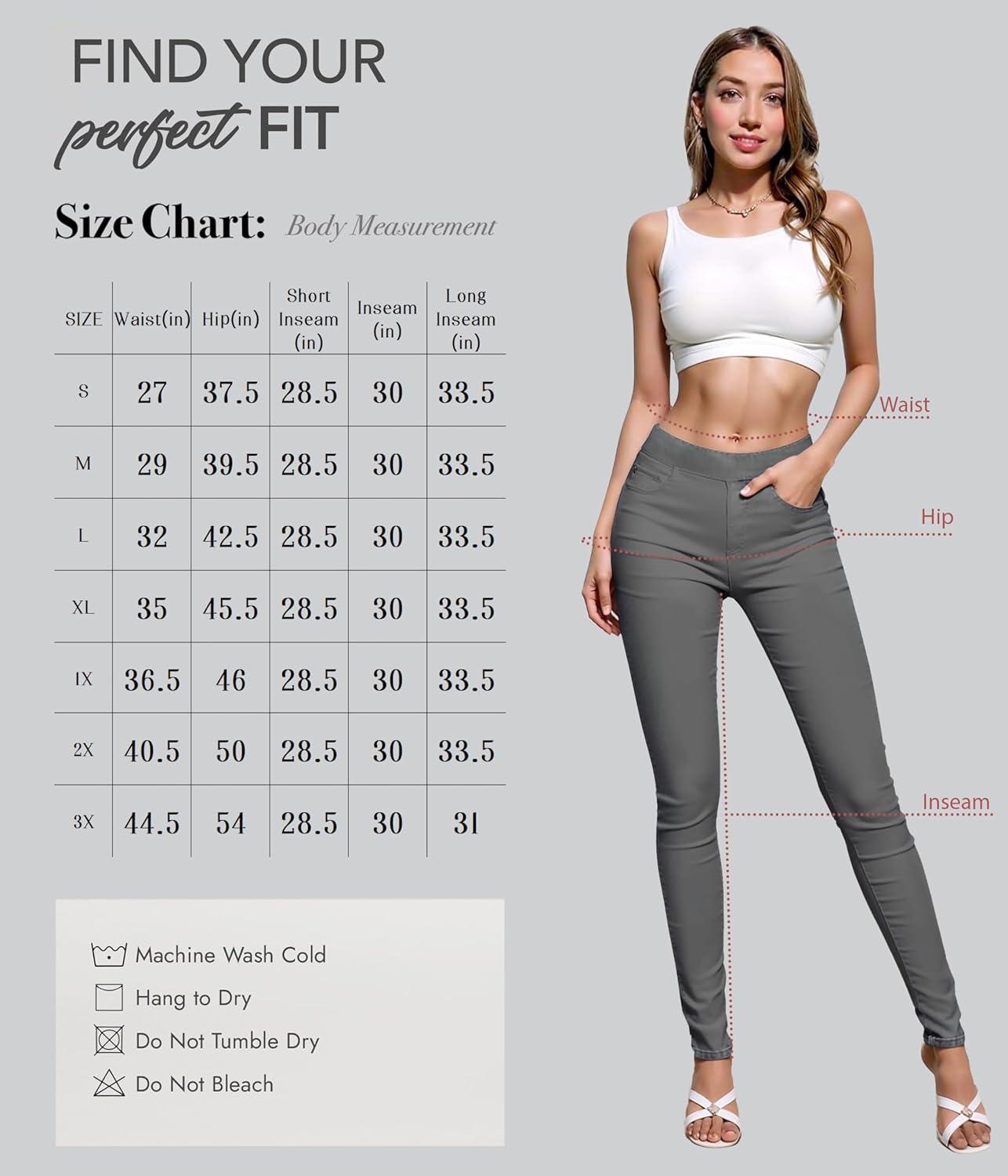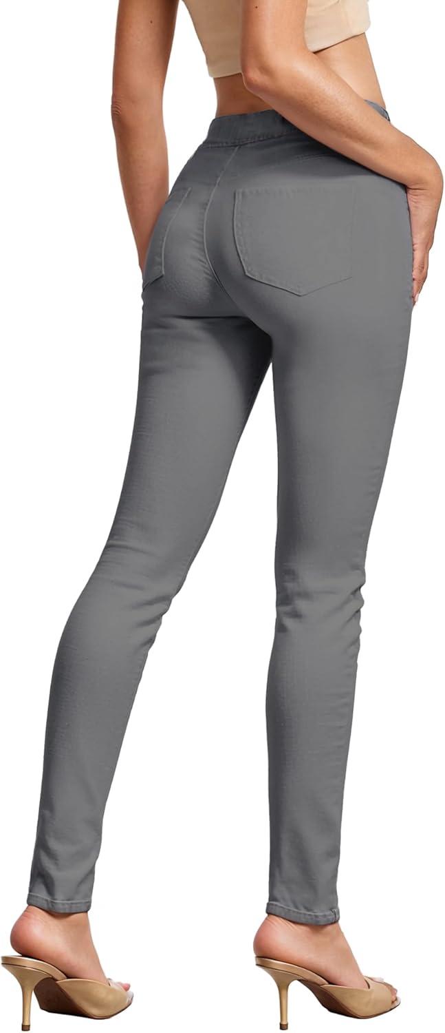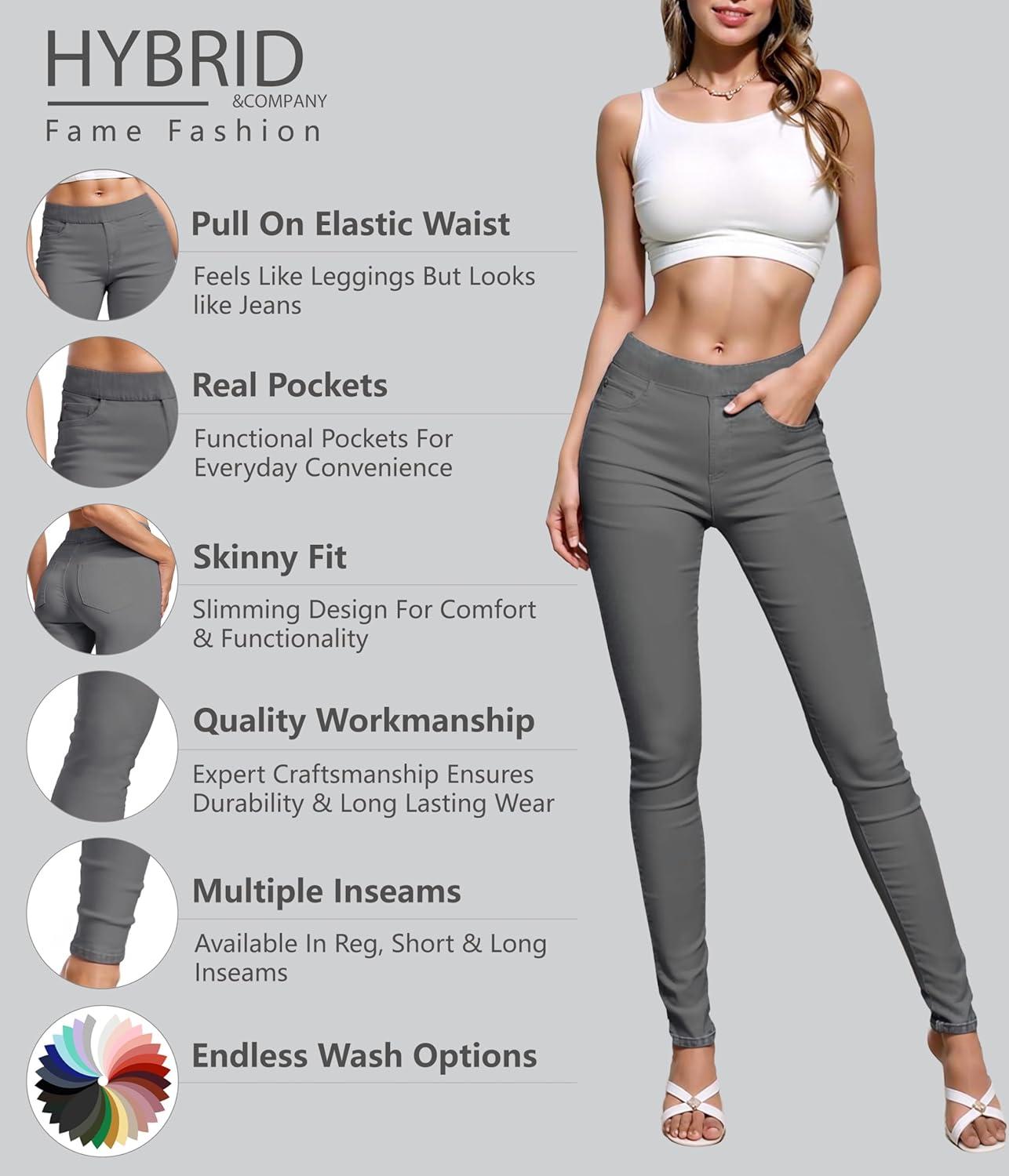 Hybrid & Company Women’s Pull On Stretchy Mid Rise Skinny Fit Pants Regular or Distressed Jeans with Long Short Inseam(Charcoal)