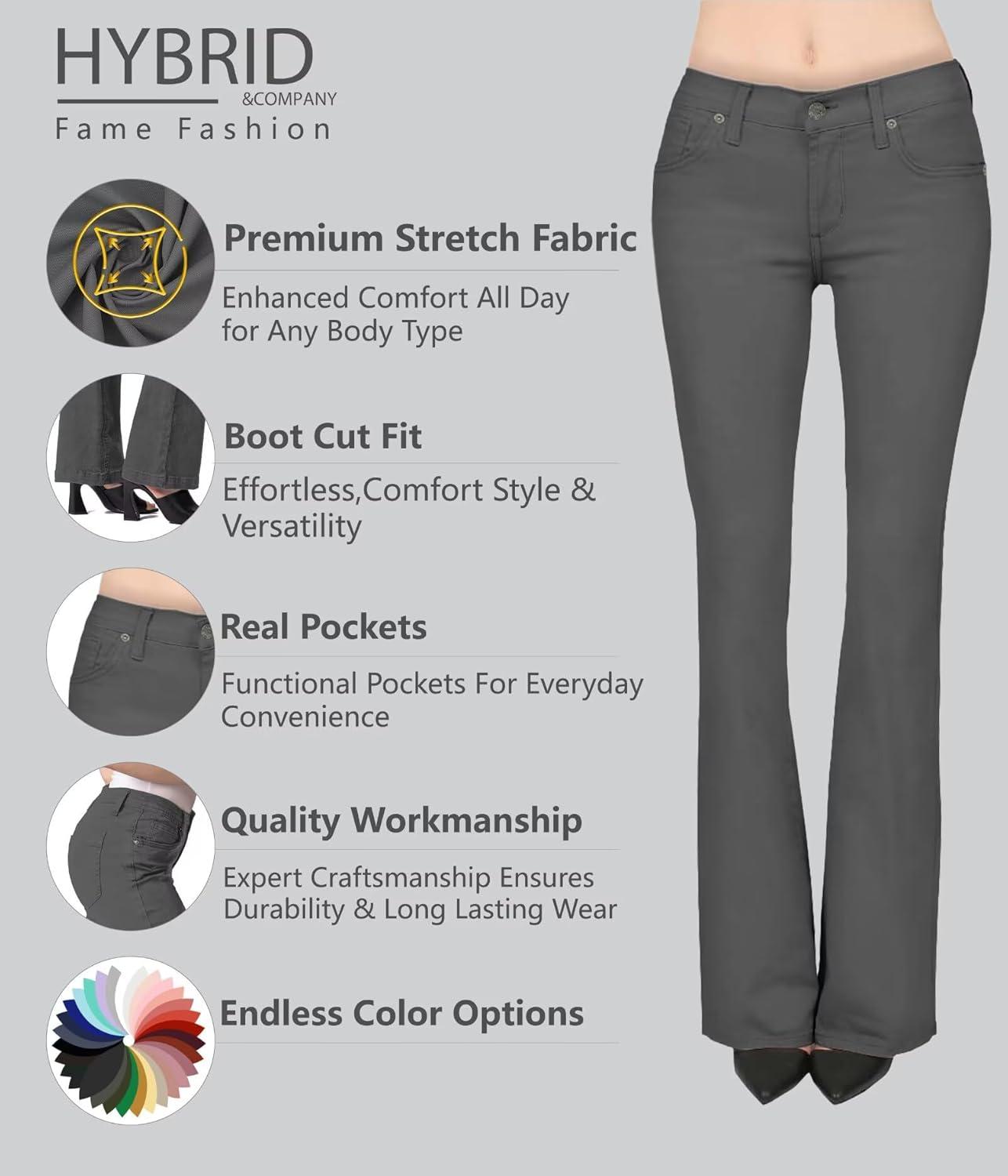 Hybrid & Company Women’s Slim Boot Cut Stretch Pants(Twill-black)