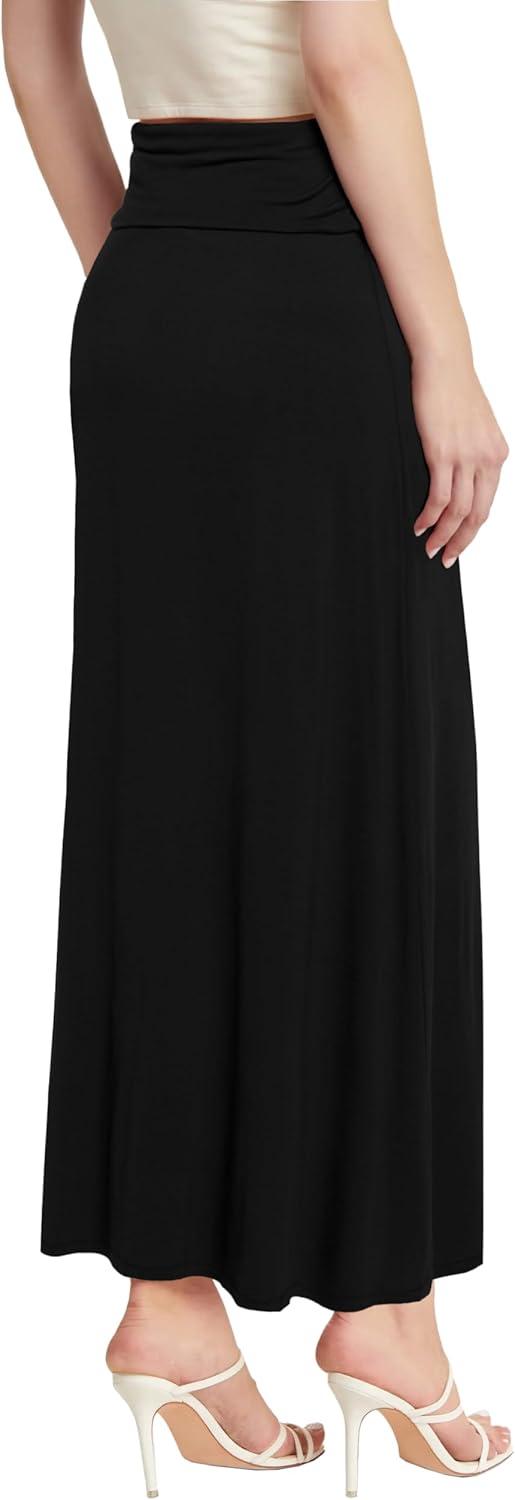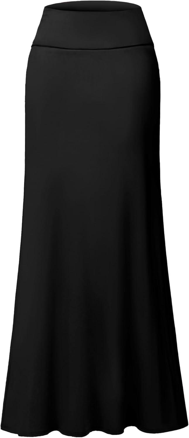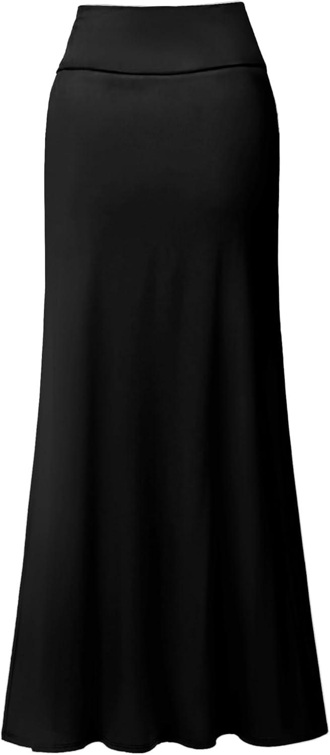Hybrid & Company Women’s Stretch Lightweight Flowy Maxi Skirt – Casual Fold Over Waist, Made in USA(Black)