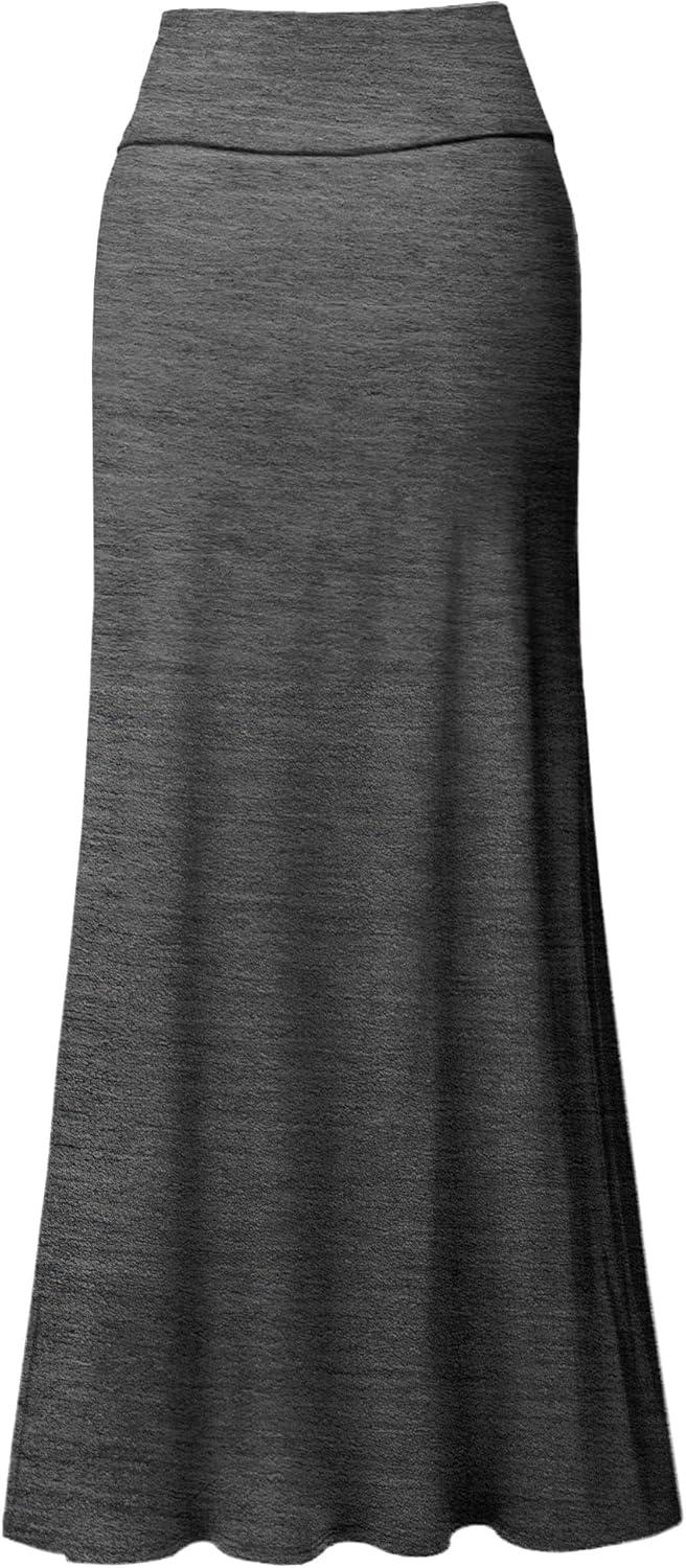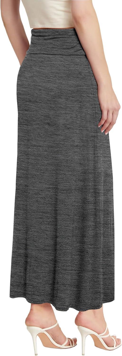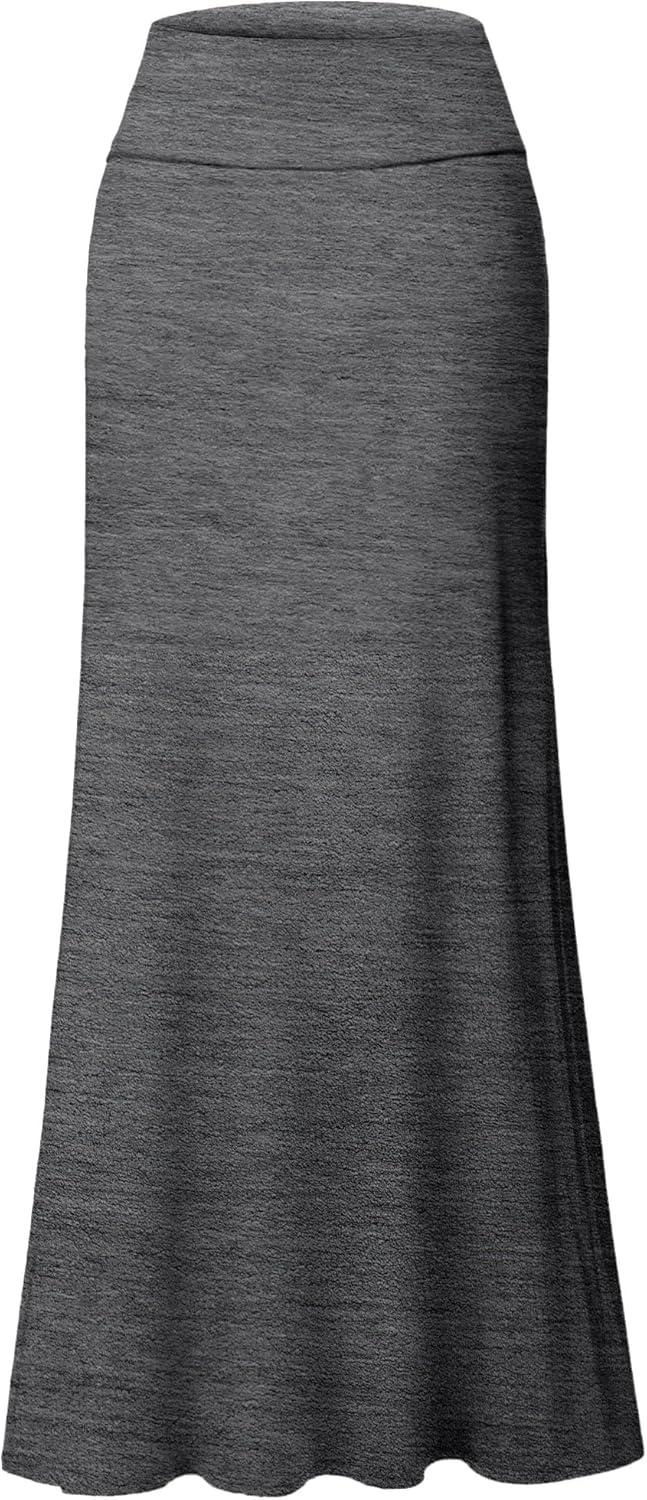 Hybrid & Company Women’s Stretch Lightweight Flowy Maxi Skirt – Casual Fold Over Waist, Made in USA(Charcoal)