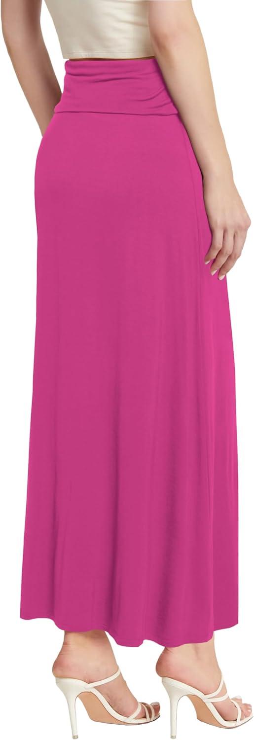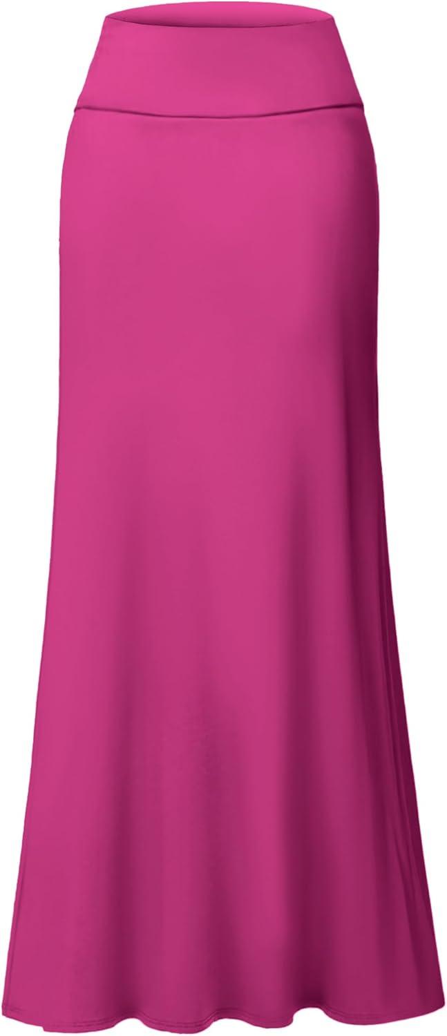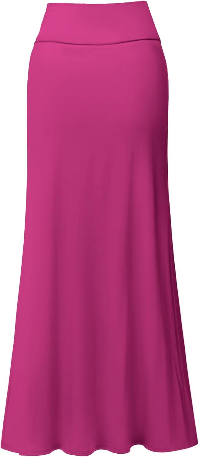 Hybrid & Company Women’s Stretch Lightweight Flowy Maxi Skirt – Casual Fold Over Waist, Made in USA(Fuchsia)